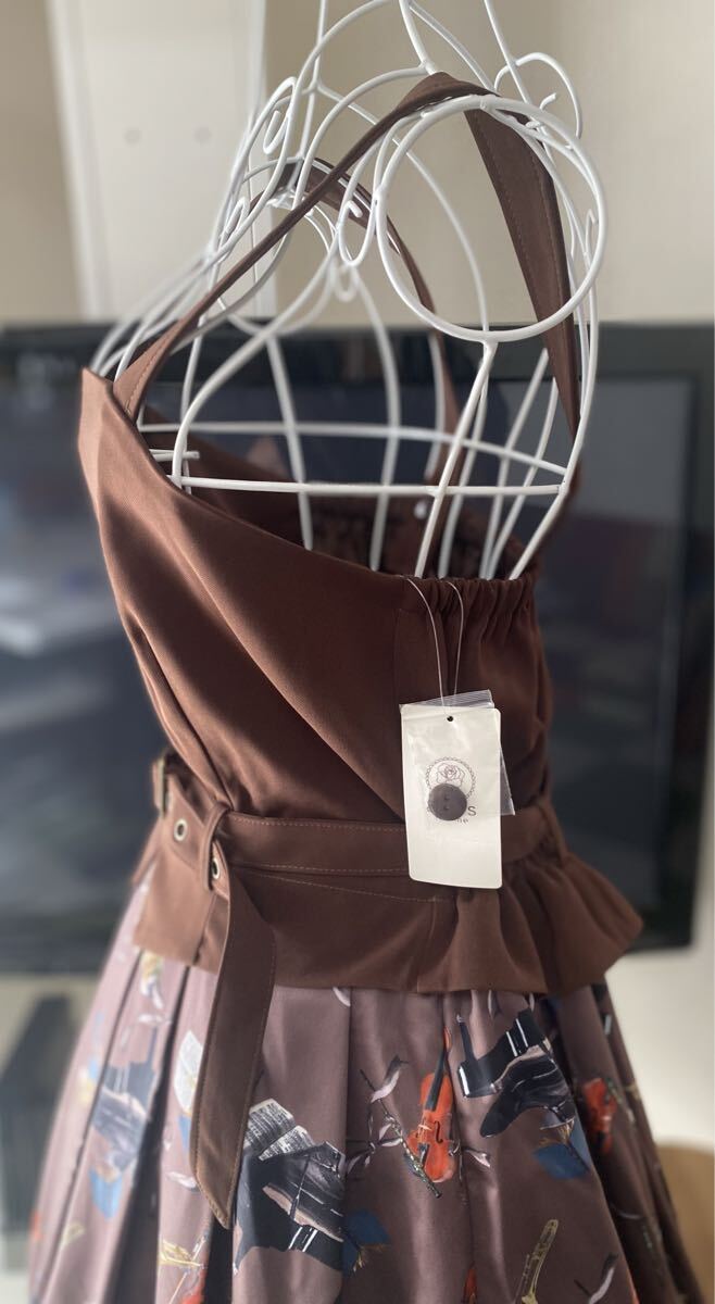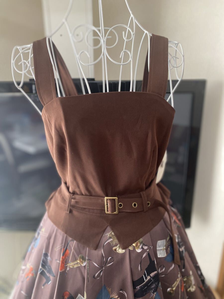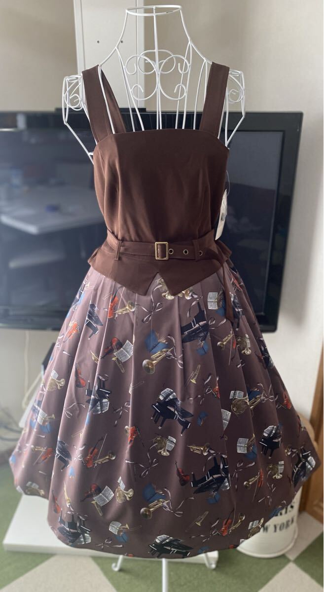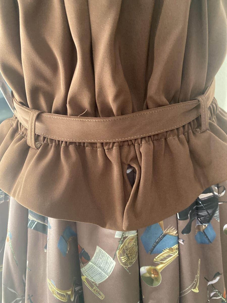 【サイズ】M 着丈:102 バスト:78~102 ウエスト:70~87 切替位置:37 付属:共布ベルト バスト(ゴムあり) ウエスト(後ゴムあり) 肩ひも調整可