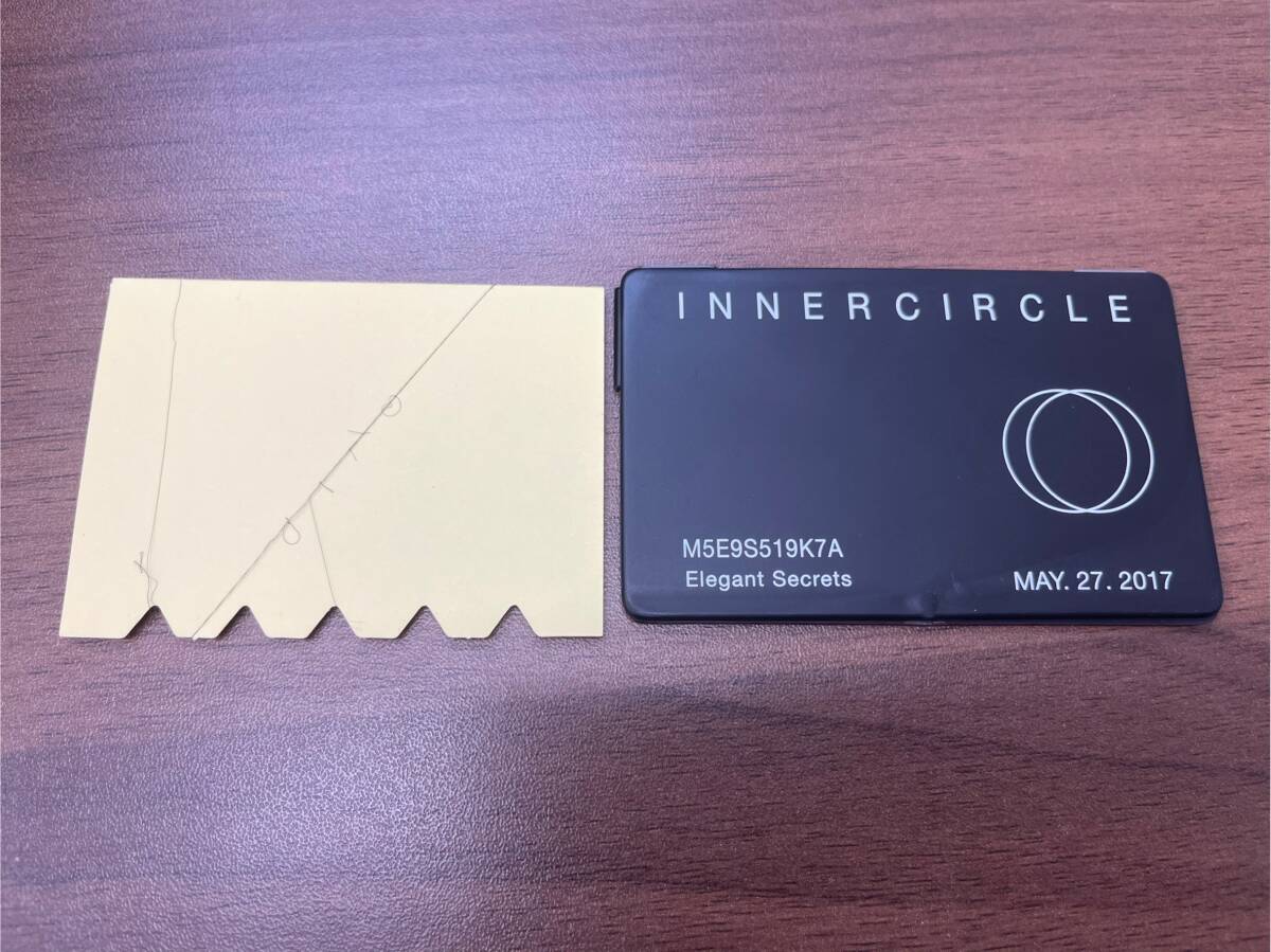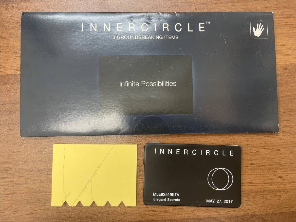 -Innecircleカード:クレジットカードのようなこのカードは、ループをウォレットに収納するための専用ホルダーで、簡単にアクセスできます。このカードがあれば、ループは完璧に保護されます。