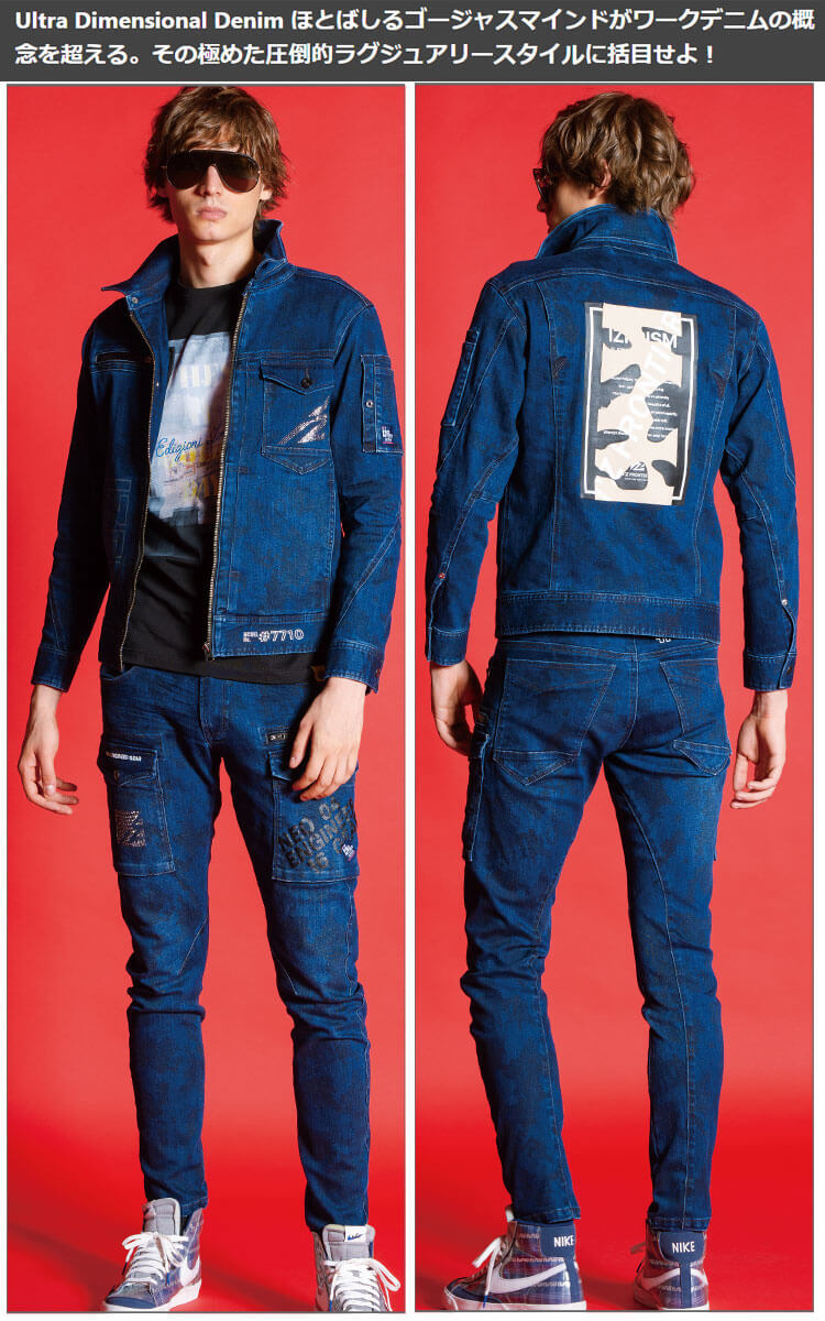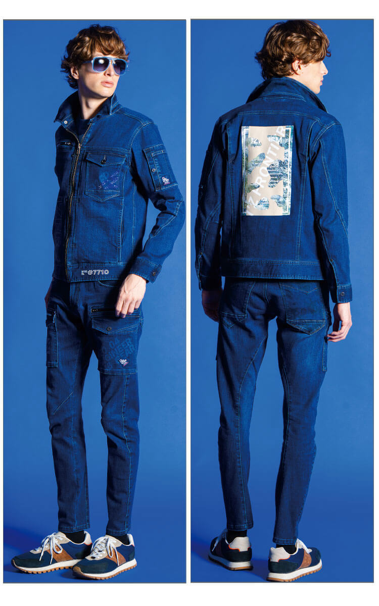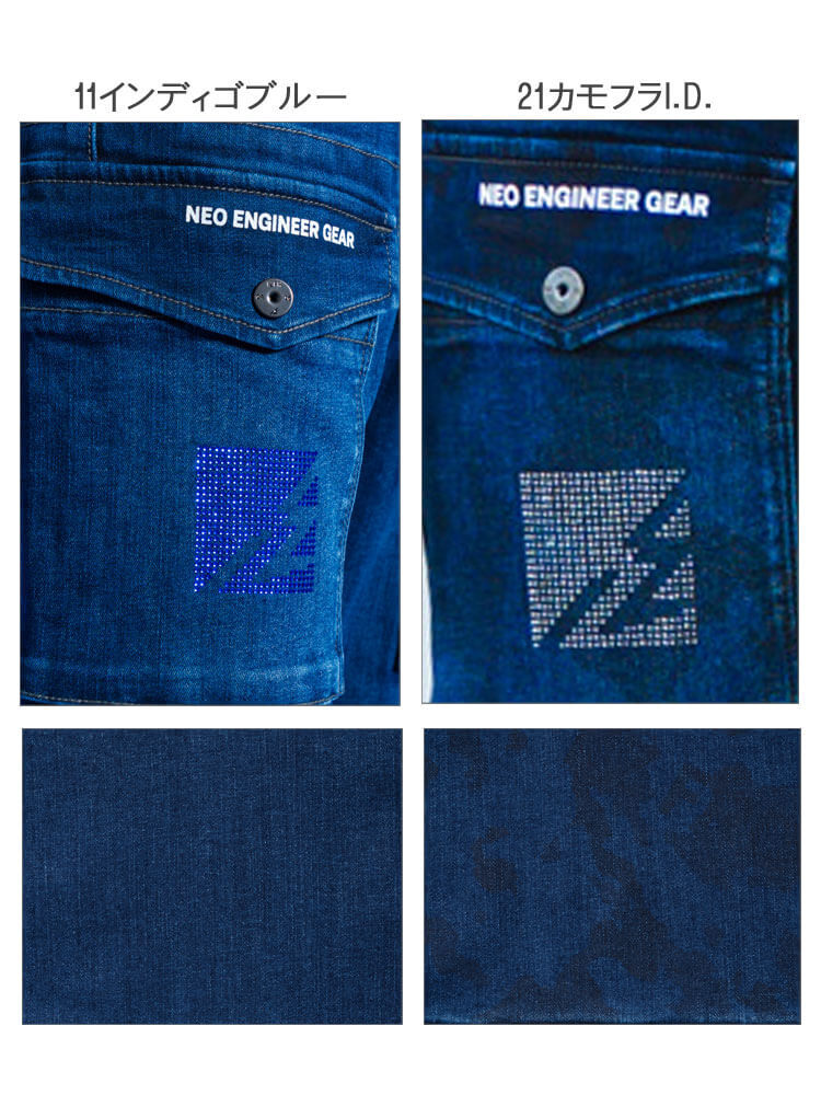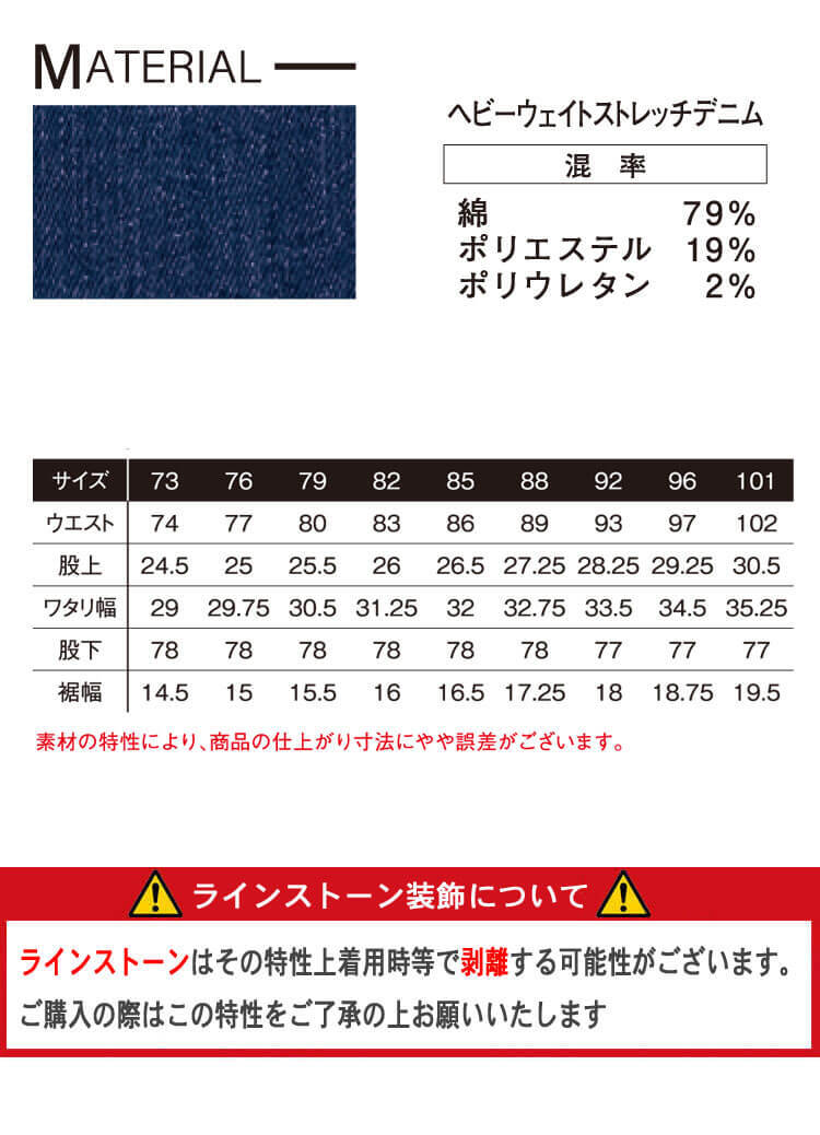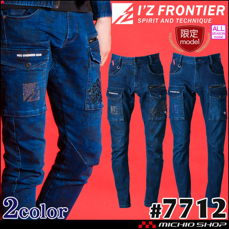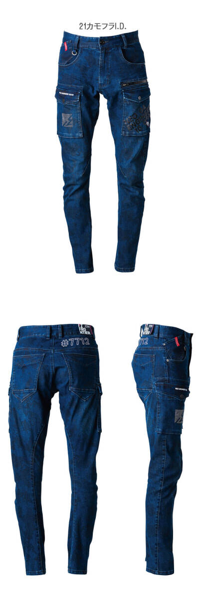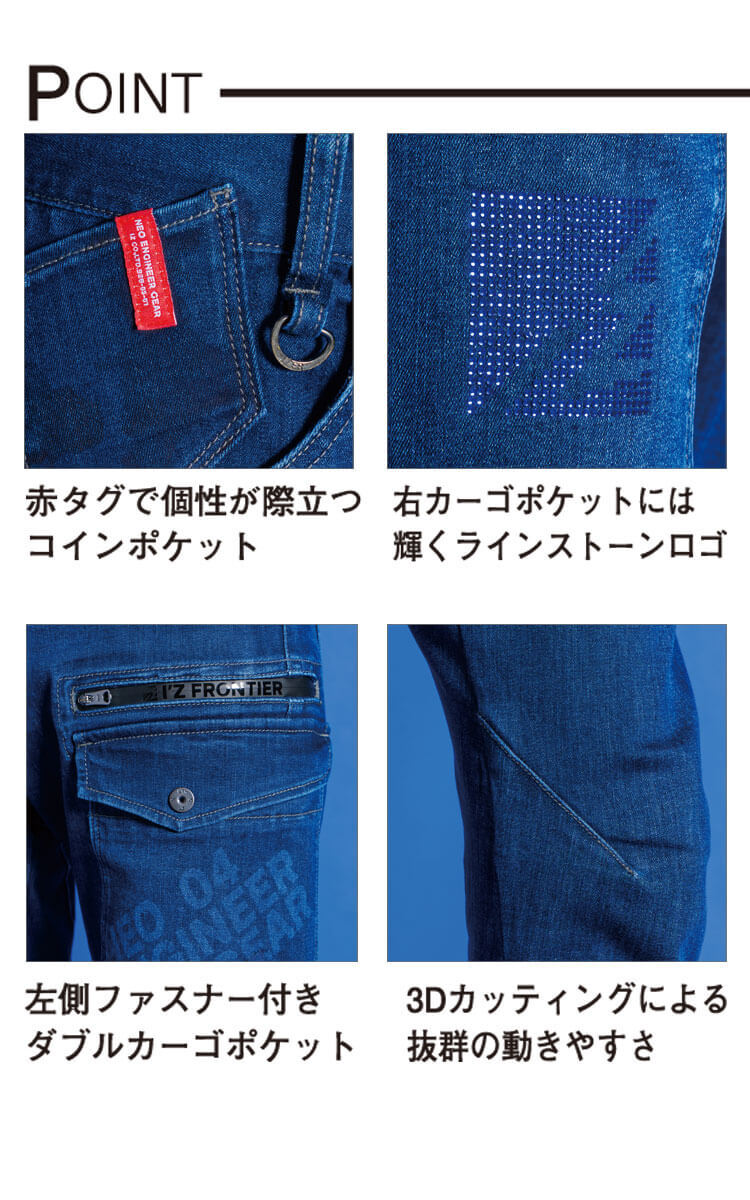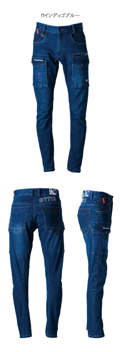 作業服 通年 アイズフロンティア [数量限定] 3Dストレッチラインストーンデニムカーゴパンツ 7712 85サイズ 11インディゴブルー