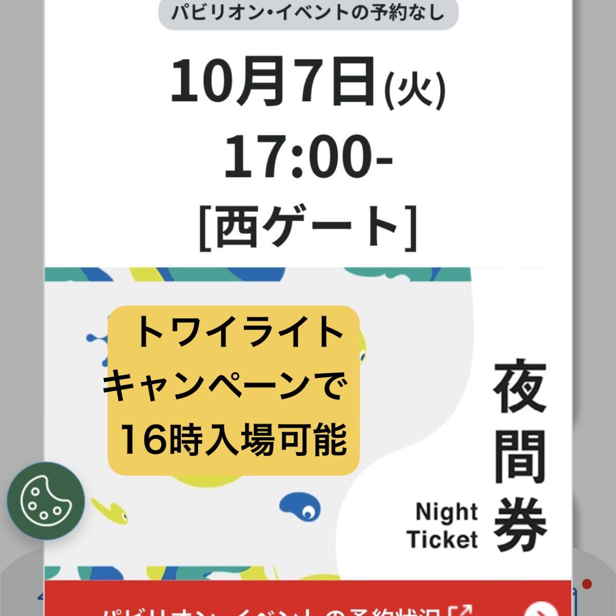 ※トワイライトキャンペーン実施中のため16時から入場可能。
