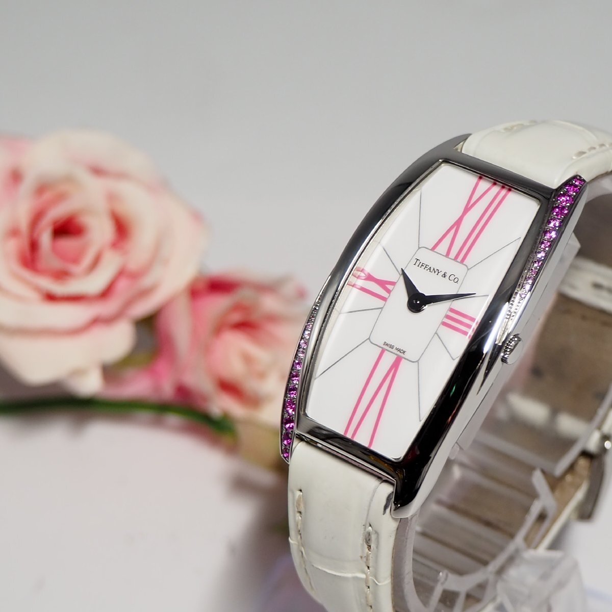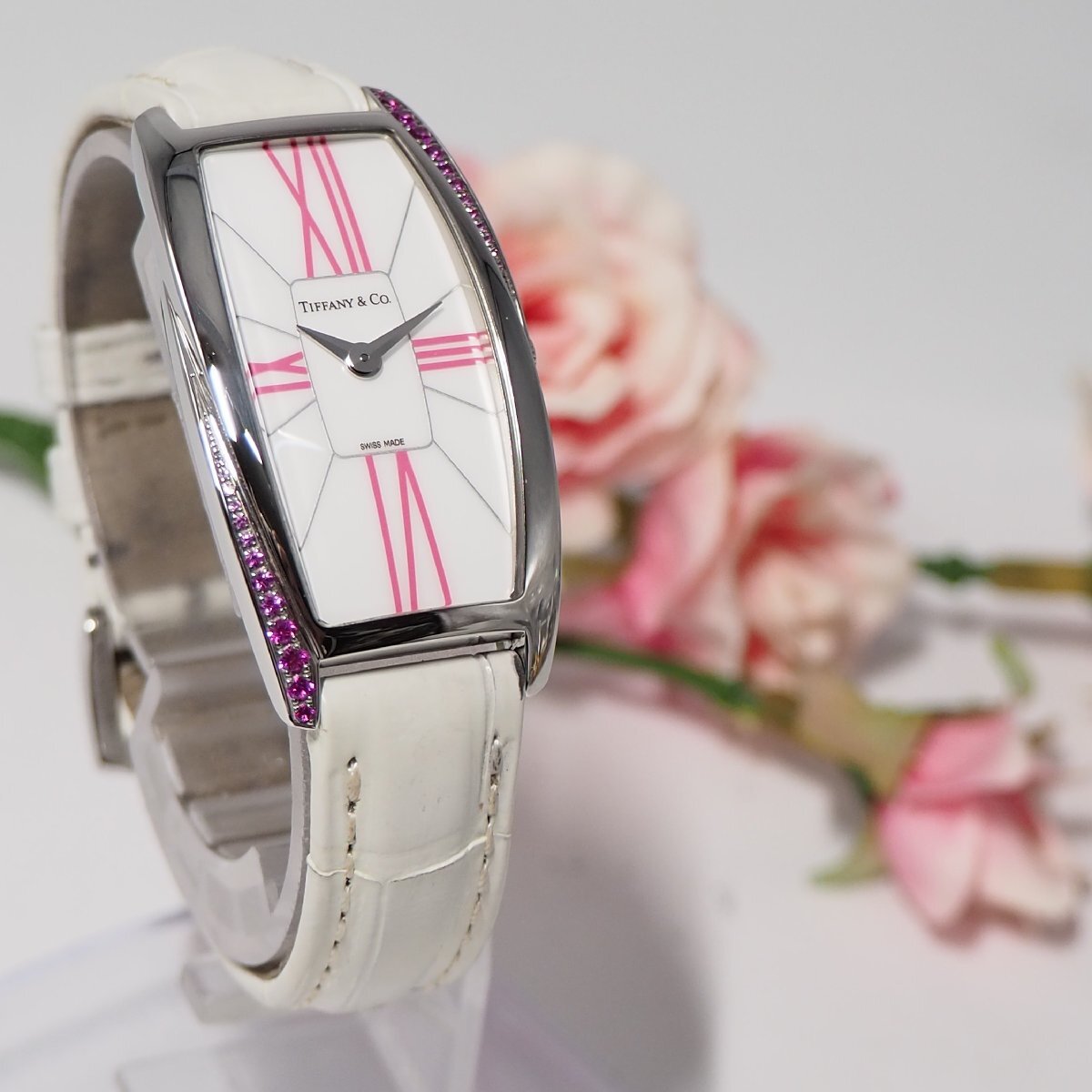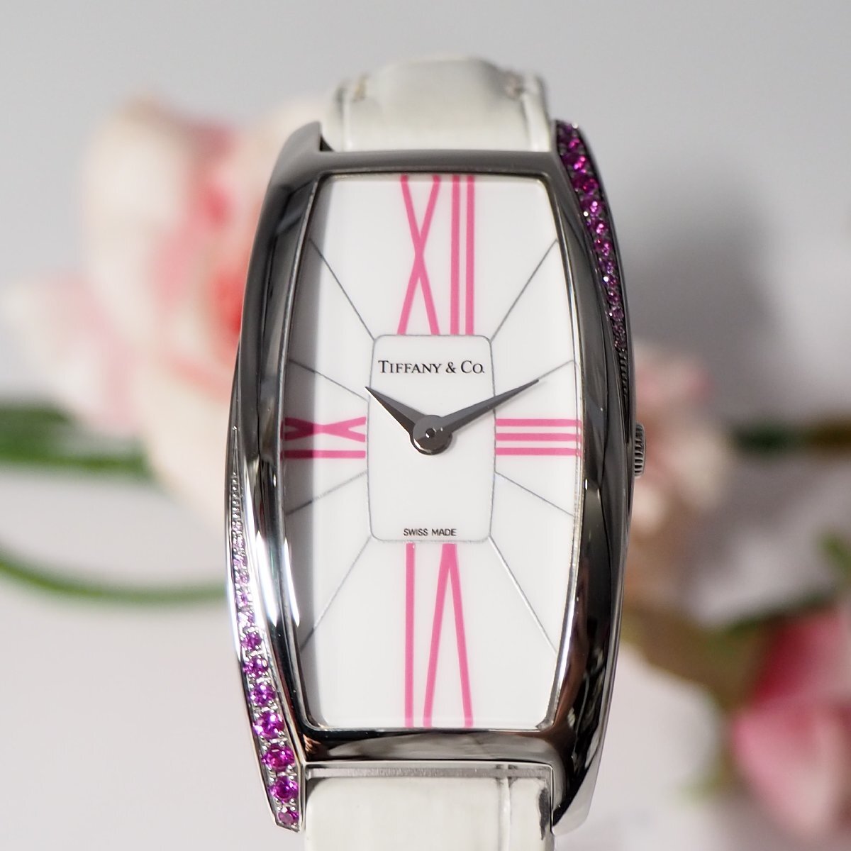 ★★★★ 新同品 ティファニー TIFFANY&CO ジェメア トノー ピンクサファイヤ レディース 腕時計 H341 中古★★★★ |