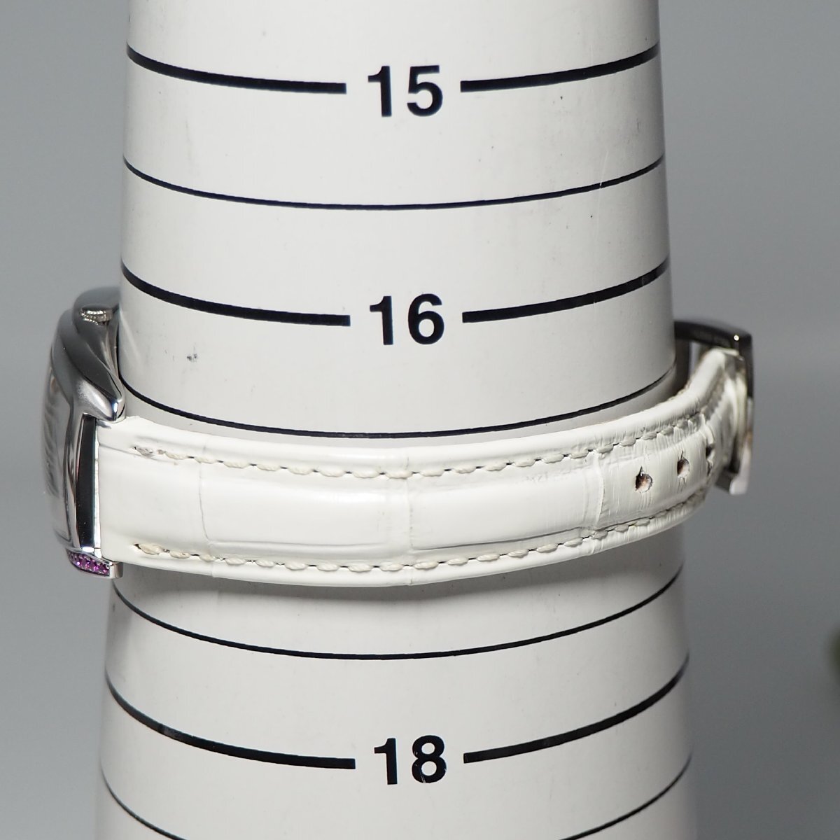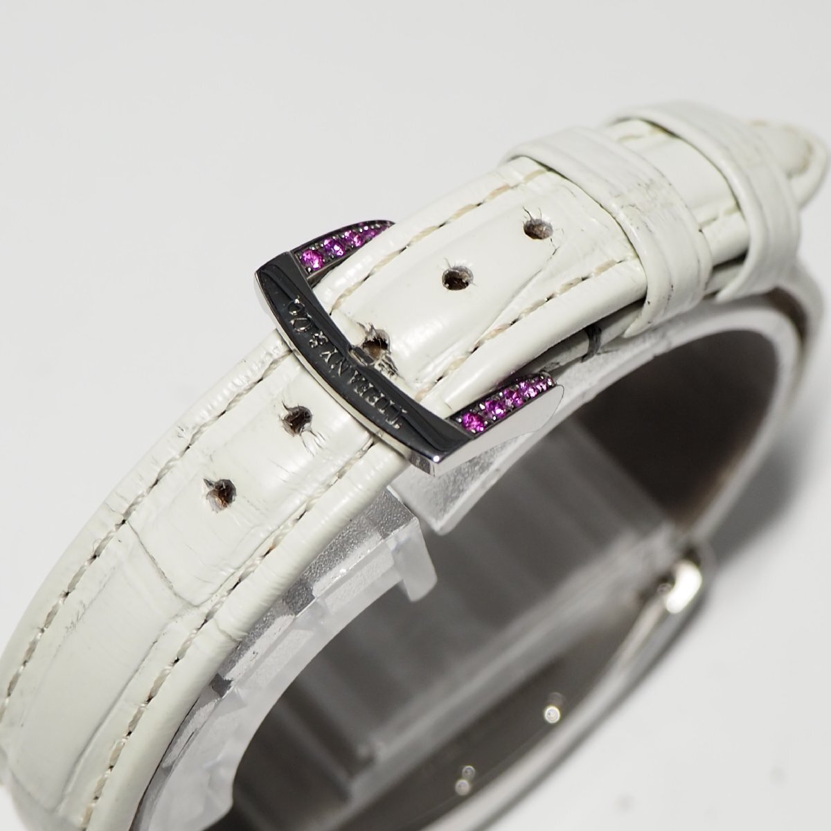 ティファニーのジェメアピンクサファイヤ付きレディース腕時計です。 尾錠にもピンクサファイヤが付いていてとてもかわいらしい時計です。 稼働品で除菌クリーニング致しておりますのですぐにご使用いただける状態です。 ☆管理番号:H341 ☆稼働品 ☆クリーニング (エタノール除菌クリーニング) ☆防水:日常防水 ☆ムーブメント:クォーツ ☆素材:ステンレス+革ベルト(純正品) ☆電池交換:稼働品のため電池交換致しておりません。 【サイズ】 ◇ケース幅約22mm×35mm(リューズ含まず) ◇厚さ約6mm ◇腕回り最大約170mm 【カラー】 ◇文字盤:ホワイト・ピンク ◇ケース:シルバー ◇ベゼル:シルバー ◇ベルト:ホワイト 【状態】 ◇SA ☆全体評価:ベルトに若干使用感がございますが本体はキズは無く未使用に近い状態です。 ☆ケース:キズなし ☆ベゼル:キズなし ☆ガラス:キズなし ☆裏蓋:キズなし ☆ベルト:若干使用感あり(純正革ベルト) ☆その他特記事項:新品社外ベルトに交換すれば新同品になるので交換しようかと思ったのですが好みがございますのでご購入者様にお任せする事に致しました。交換すれば新同品になりますし、エタノール除菌クリーニング致しておりますのでもちろんこのままでもご使用いただけます。 【付属品】 ◇本体のみ ※公安委員会の古物商許可証の元古物市場(コメ兵、ブランドオフ、エコリング等)にて購入したものです。 全て【正規品保証】致します。 過去1度も経験はございませんがコピー品であった場合返品返金対応をさせていただきますので安心してご購入下さい。 |