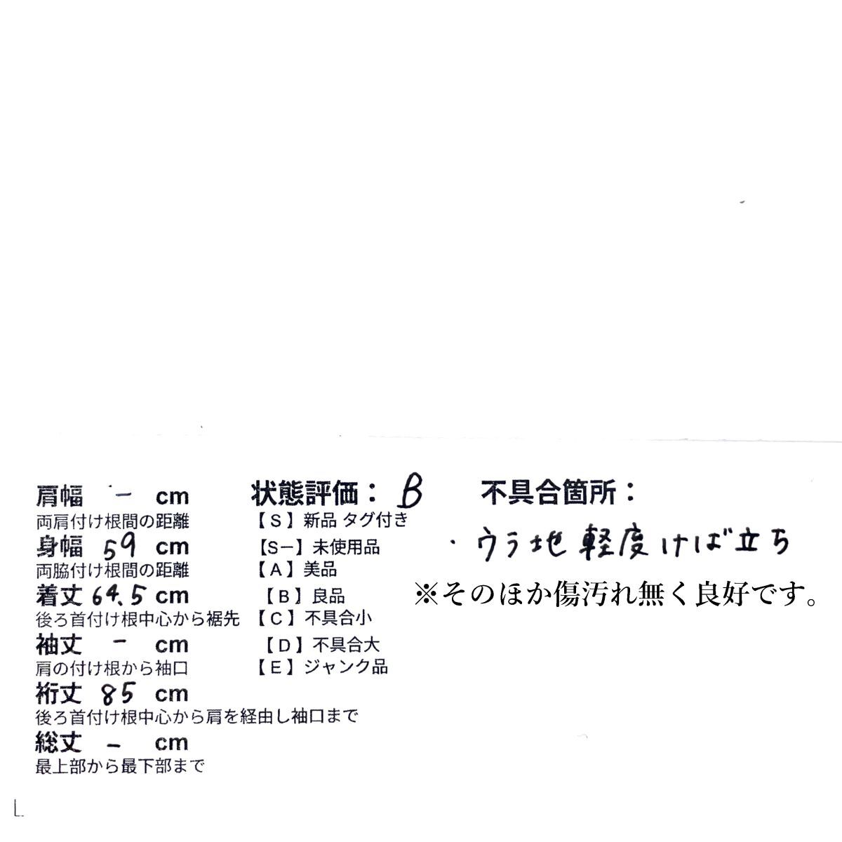 B・・・目立った汚れやダメージのない良品