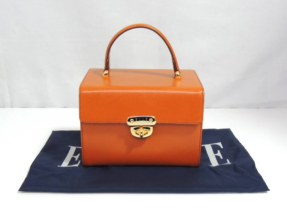□ ELLE PARIS エル レザー ボックス型 ハンドバッグ コスメポーチ トップハンドル キャメル ゴールド金具 中古品 保管品 ③ | |||||||||||||||||||