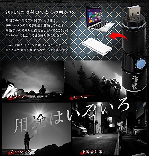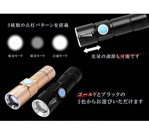 USB充電式 小型LEDハンドライト ゴールド |