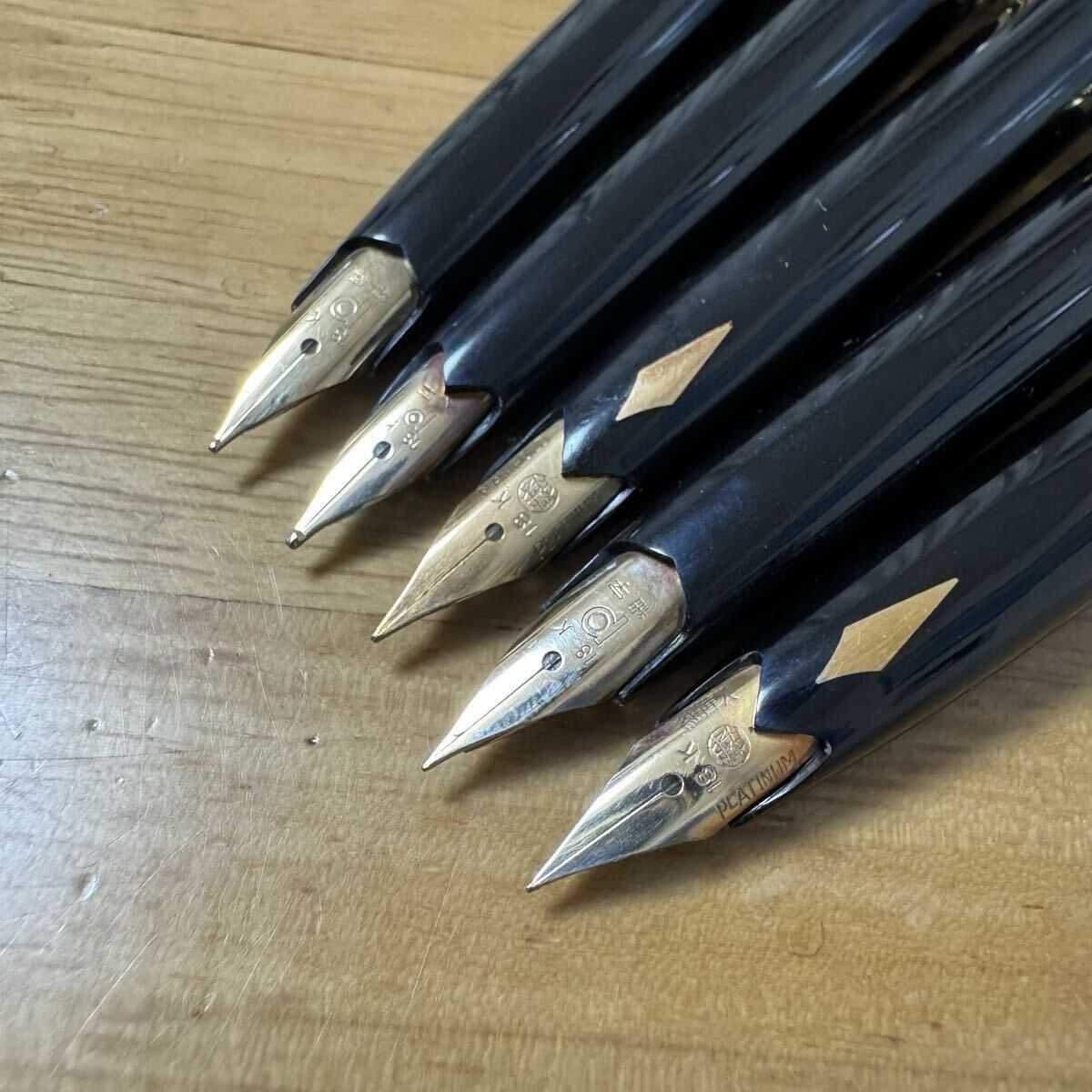 全て一度もインクを通していない新品未使用品です。長期保管品の為、細かい傷や汚れが付着している場合があります。予めご了承くださいませ。ペン先の太さ、軸の状態(傷、汚れ、シールの有無など)はできる限り画像に載せています。画像をよく見てからご検討頂けますと幸いです。よろしくお願いいたします。