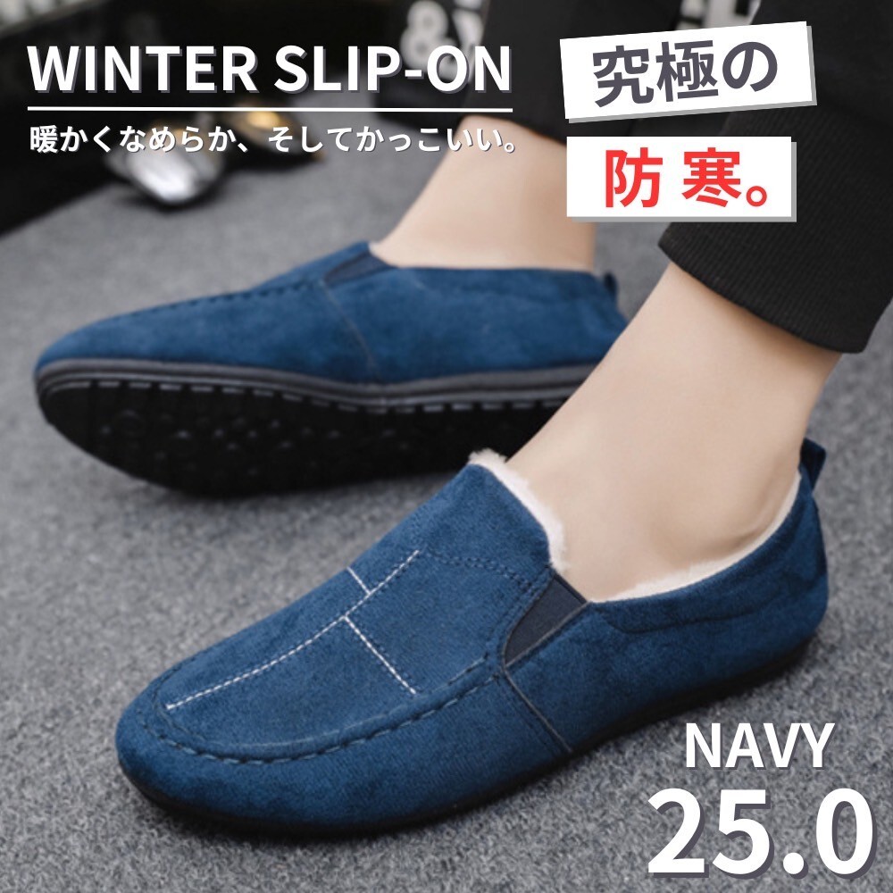 スリッポン ボア メンズ スニーカー カジュアルシューズ ファーモカシン ローファー 裏起毛
