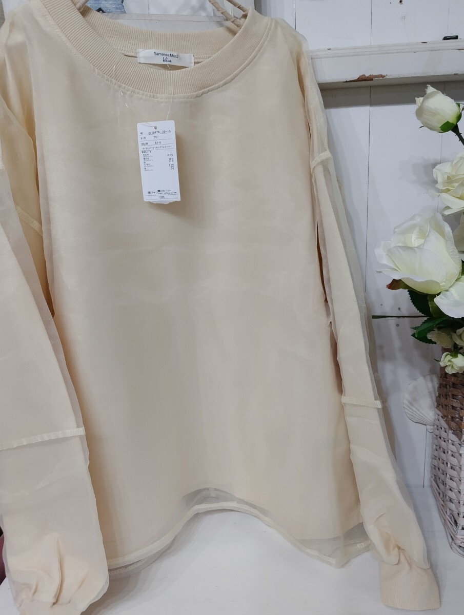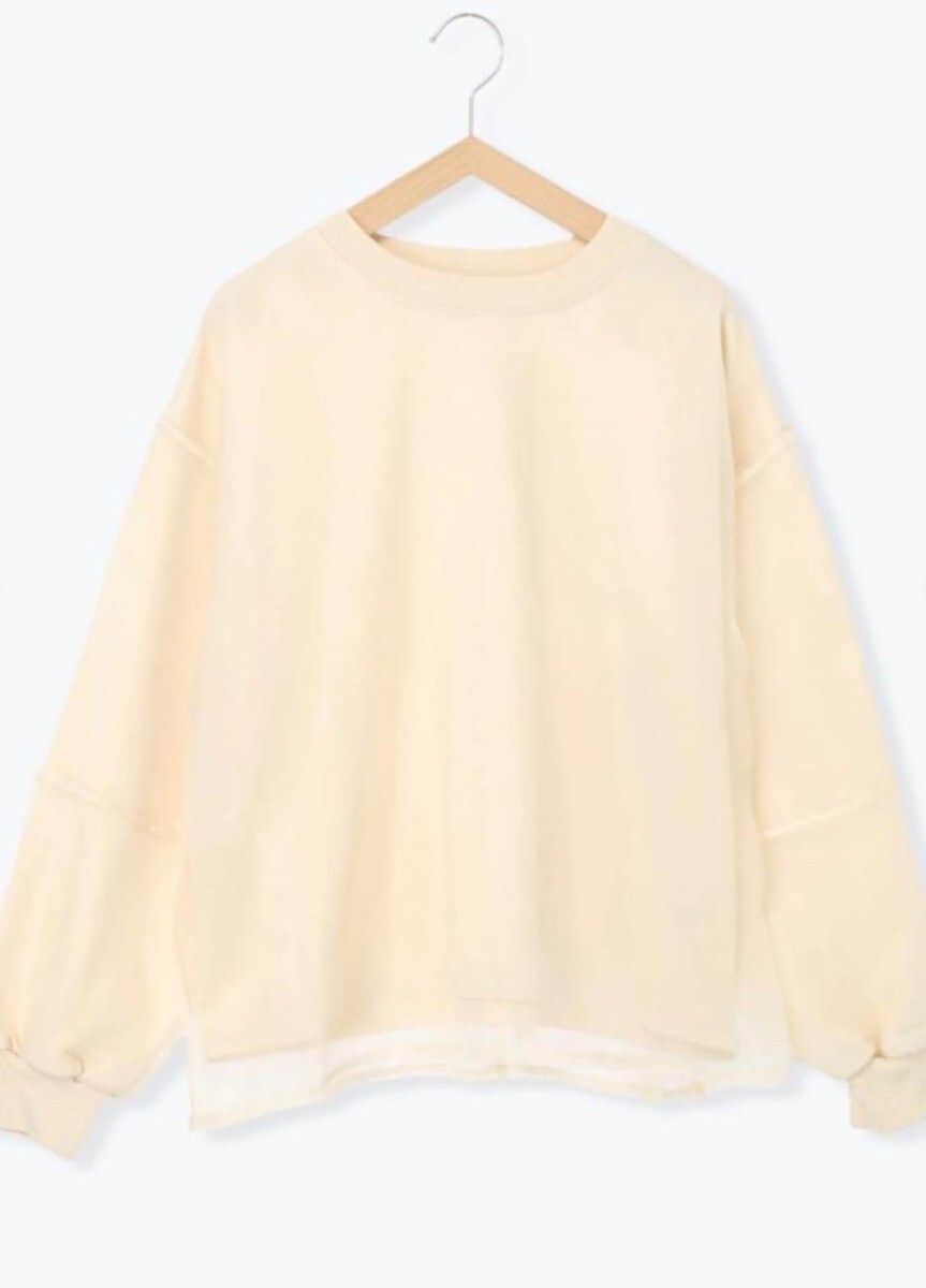 オーガンジーを重ねたドッキングデザインのプルオーバー。上品な光沢とシアー感のある素材を使用し、トレンドライクな着こなしを演出してくれます。オーバーシルエットでラフにスタイリングすることができるのも嬉しいポイント。カジュアルスタイルも大人っぽい着こなしに決まるアイテムです。