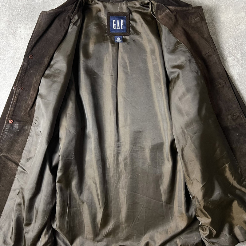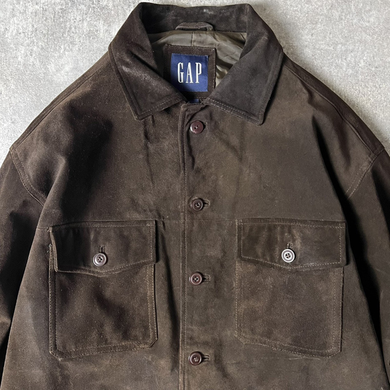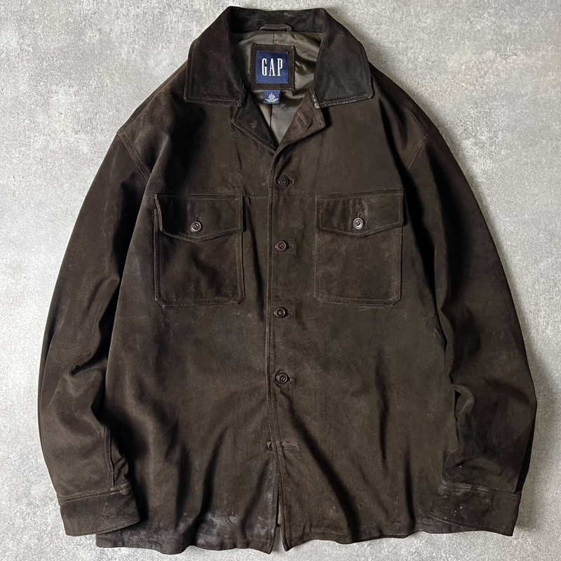 90s GAP サテン ライナー 本革 スエード レザー シャツ ジャケット L / 90年代 オールド ギャップ ブラウン ヌバック