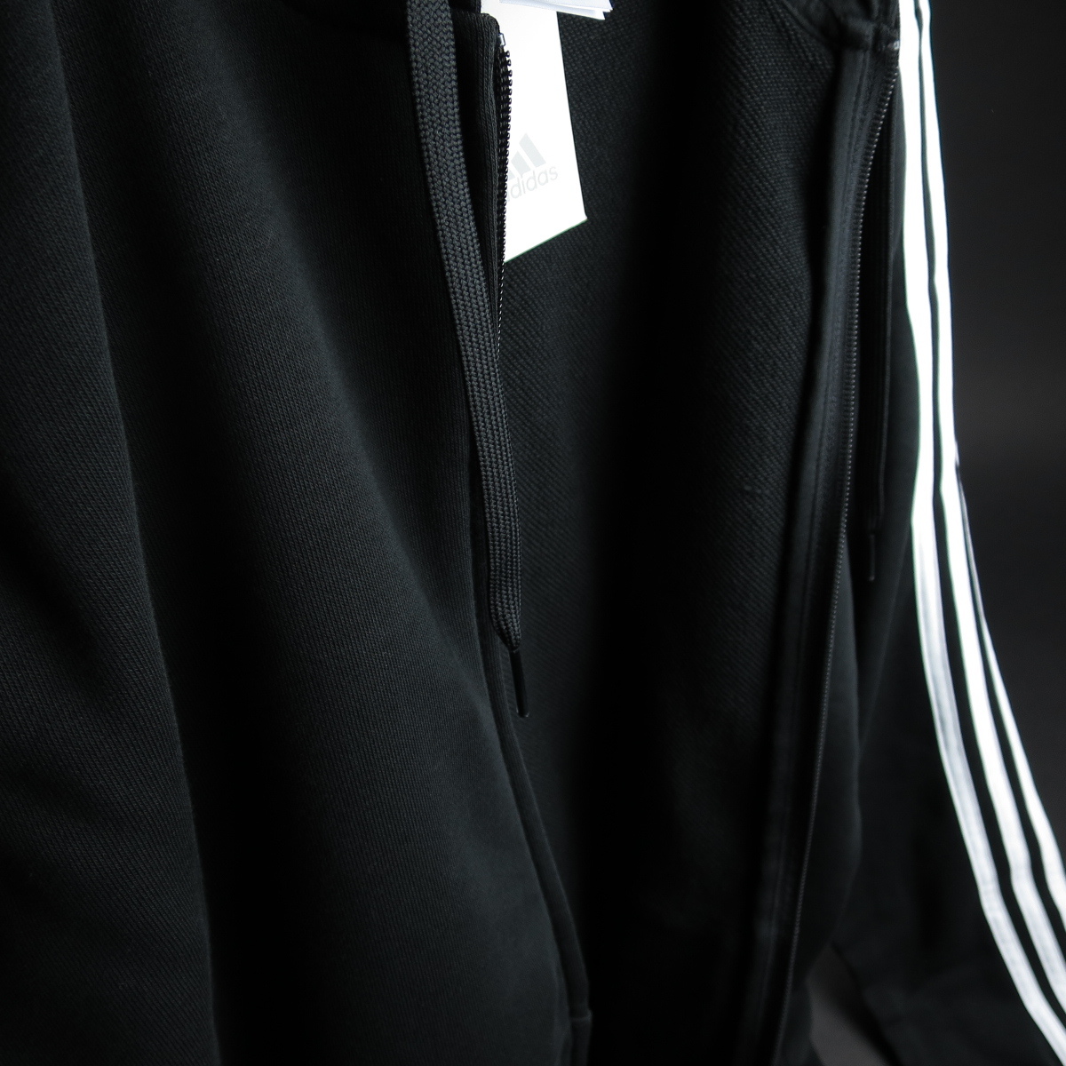 ・肩から袖にかけて、コントラストカラーのスリーストライプス ・胸にさりげなくロゴをあしらった、クラシックなフーディー。 ・緩すぎずタイトすぎず、快適な着心地のレギュラーフィット ・リブ仕上げの袖口を備えたロングスリーブ ・カンガルーポケット / フルジップ / ドローコード付きフード ・リブ仕上げの裾 ・「ベター・コットン・イニシアティブ」とのパートナーシップ |