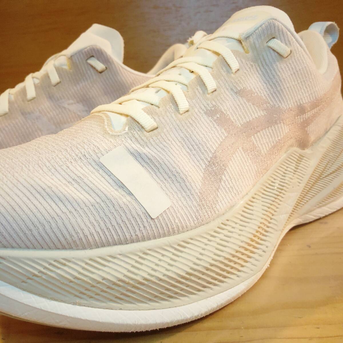 分厚い上層は軽量・高反発「FF Blast Turbo」で、レースモデルのMetaspeed+シリーズと同じ素材が用いられています。アウトソール側はNovablastなどと同じFF Blast+で、上層よりも柔らかく、着地がとてもソフトで気持ちがいいです。