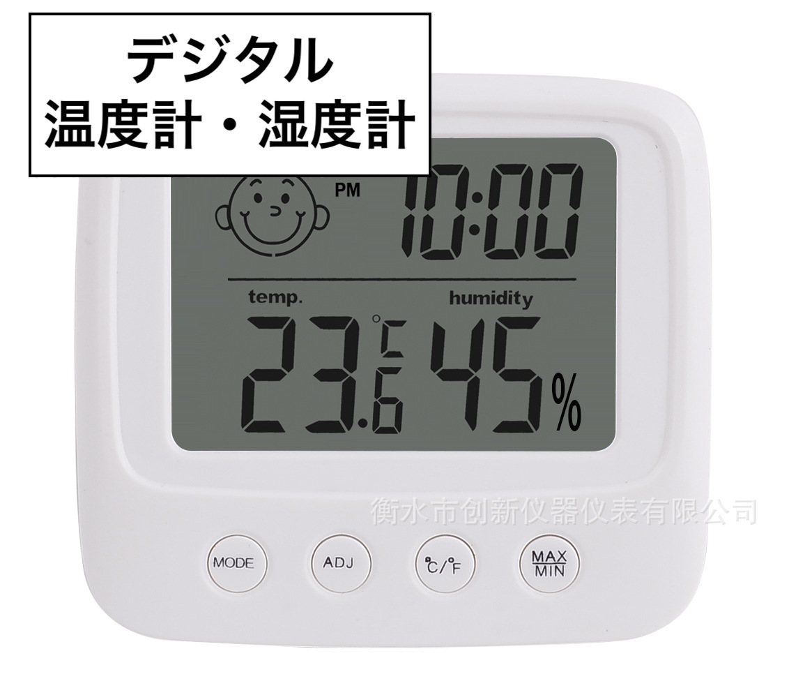 多機能デジタル温湿度計です。温度・湿度の感知機能があり室内環境を判断できます。