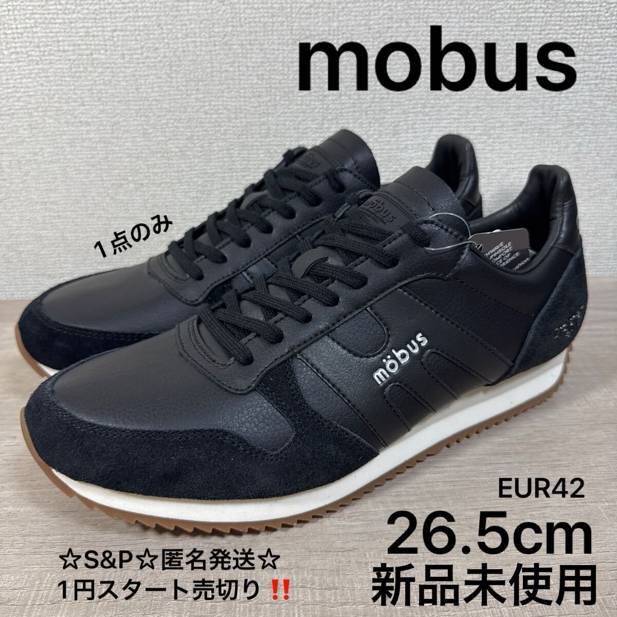 1円スタート売切り 新品未使用 26.5cm EUR42 モーブス mobus スニーカー 靴 シューズ レザー ブラック 完売品 1点のみ