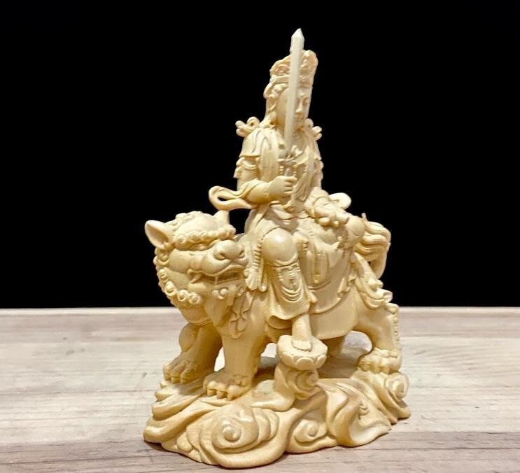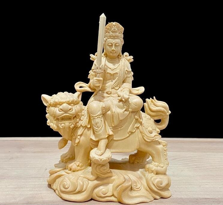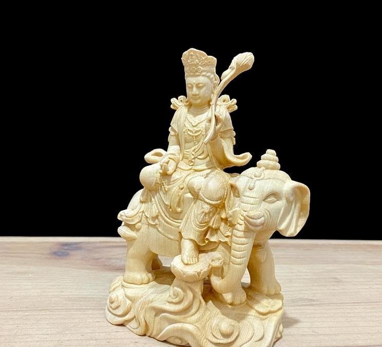 大好評☆珍品 天然木 木彫仏像 文殊菩薩 普賢菩薩 座像 一式 彫刻