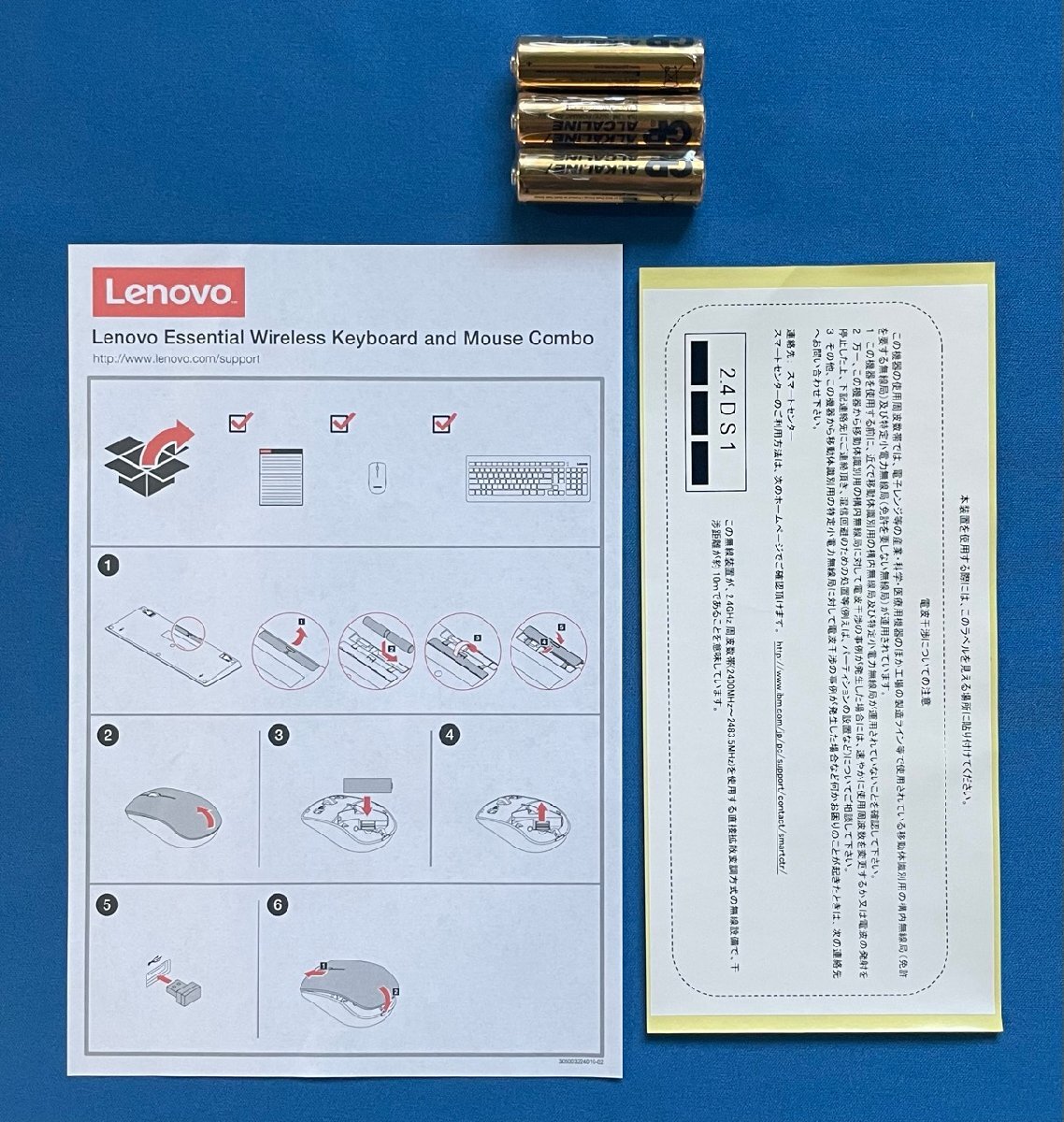 内容品はキーボード、マウス(USBレシーバー内蔵)、説明書、単三電池 3本(保証外)