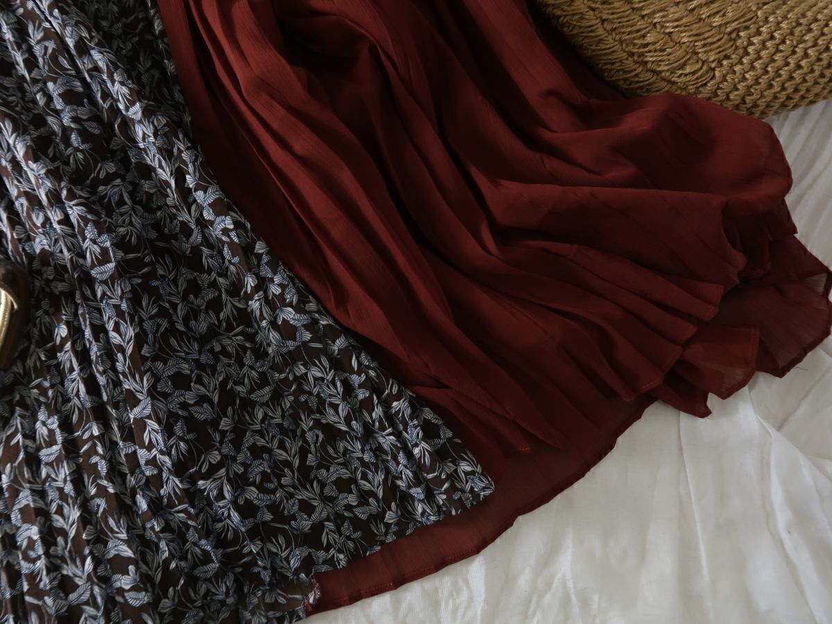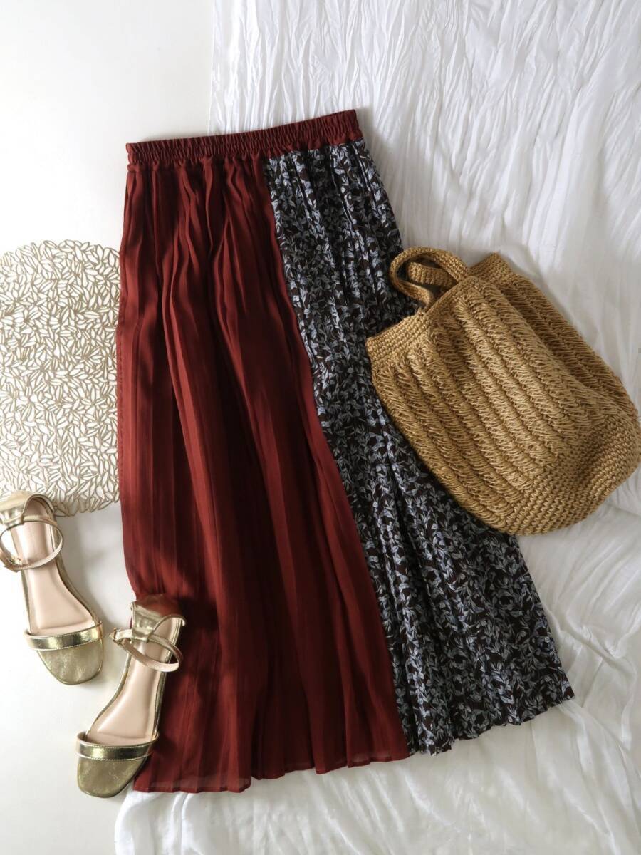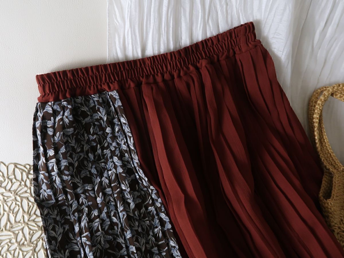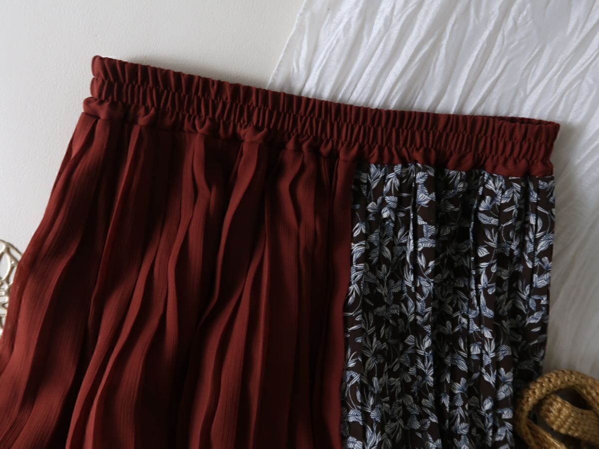 注目の切替プリーツスカート。シャリ感があって涼やかな揚柳生地を使い、線画のフラワープリントに切り替えています。1枚でトレンドと季節感が取り入れられる一石二鳥のアイテムです。