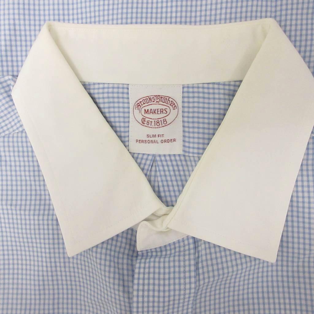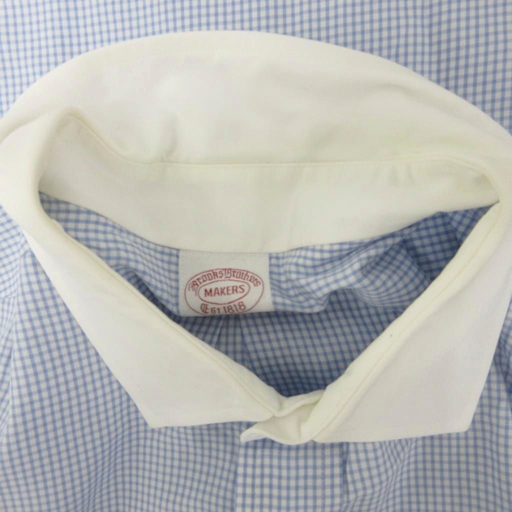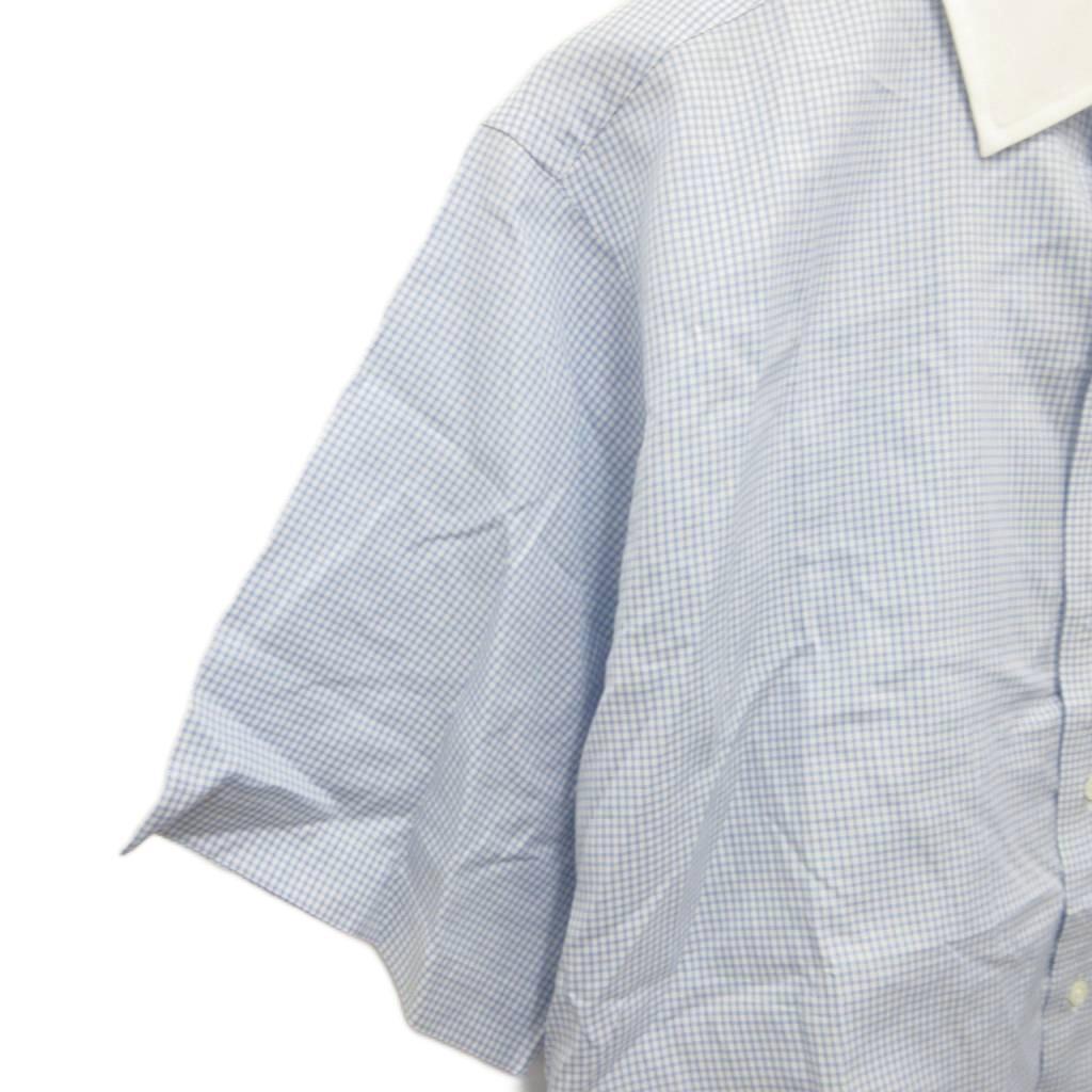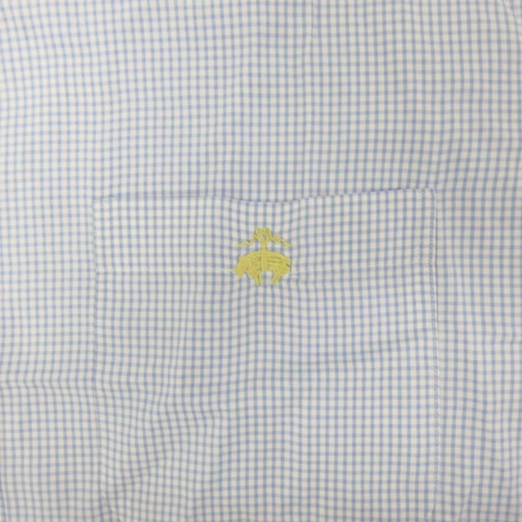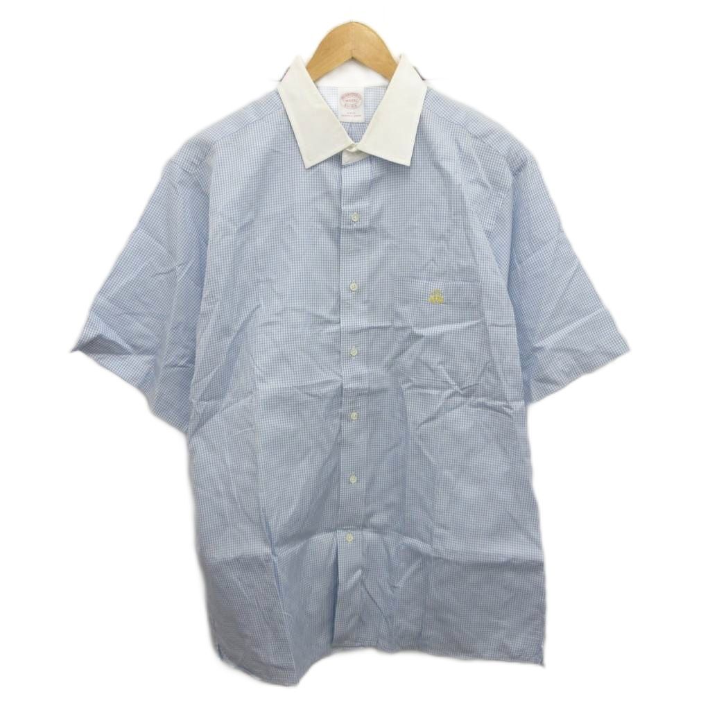ブルックスブラザーズ BROOKS BROTHERS シャツ 半袖 チェック ロゴ刺繍 青 ブルー 白 ホワイト 065 114 ■YHS5 メンズ