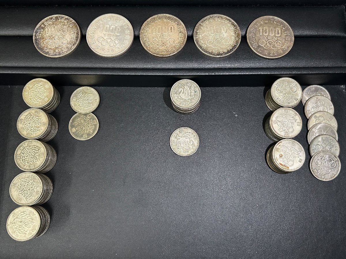 【V99084】1000円・100円銀貨 104枚(オリンピック1000円5枚 100円稲穂52枚 オリンピック36枚 鳳凰11枚)額面14,900円 現状品 佐川のみ |