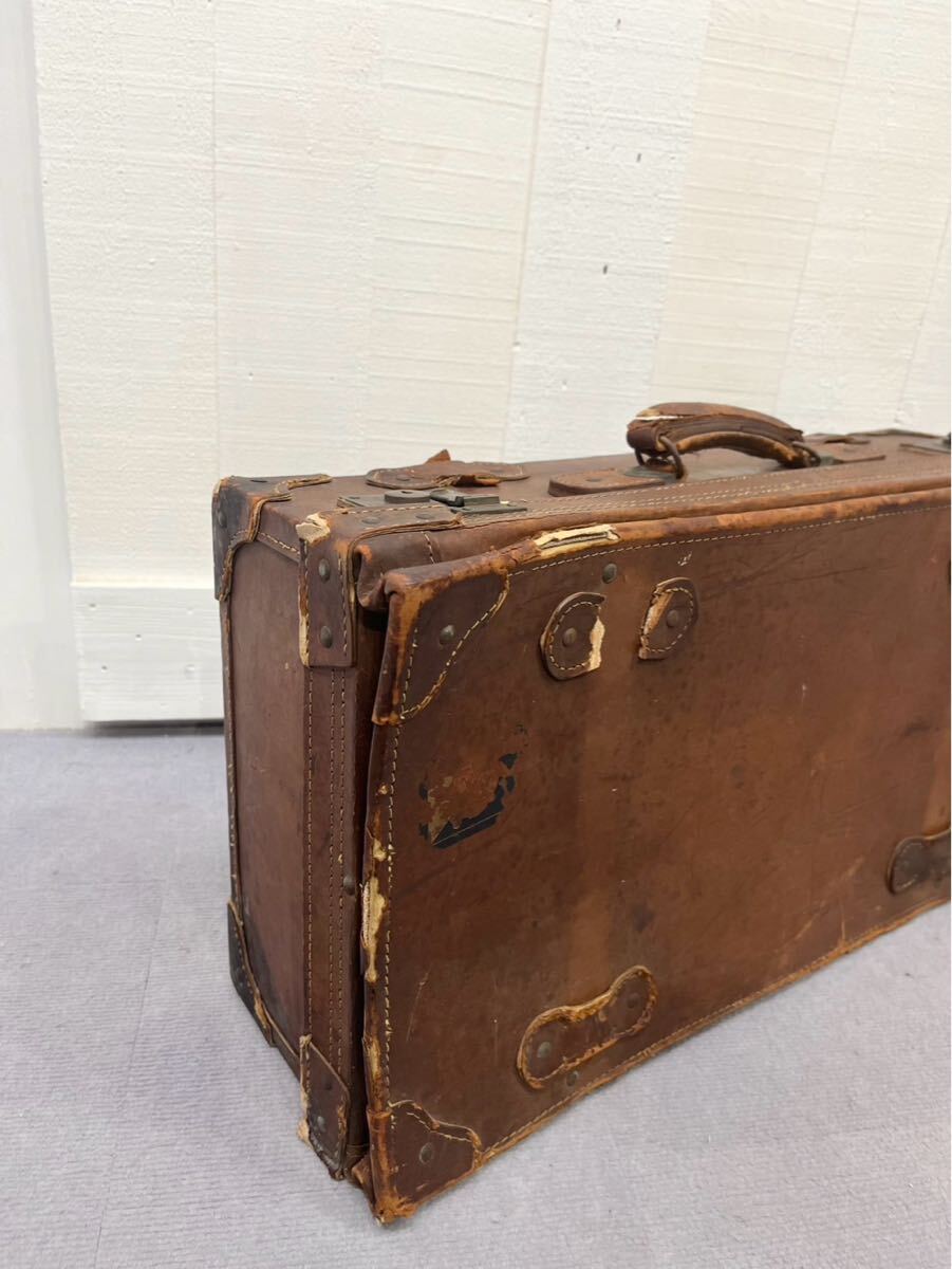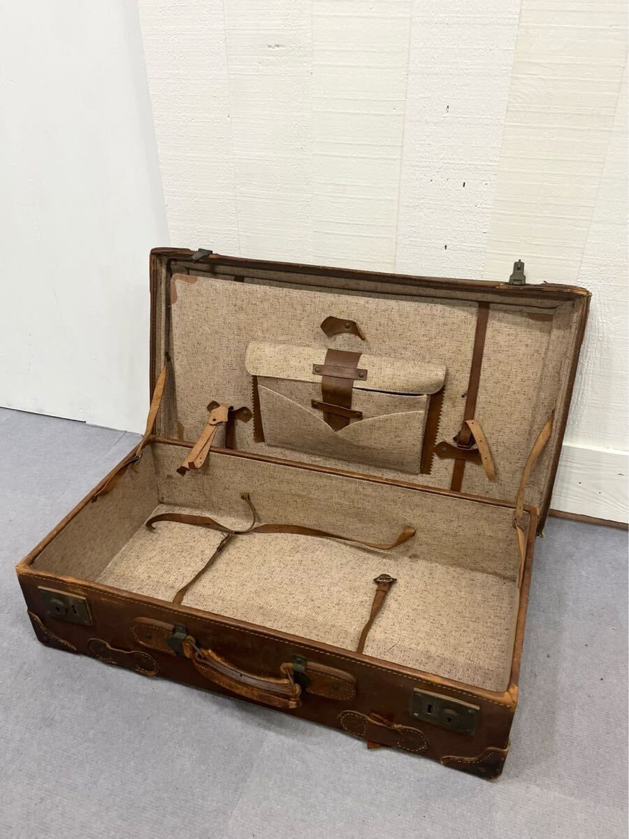 古い革のトランク ヴィンテージ スーツケース ディスプレイ 旅行鞄 店舗什器 レトロ カバン バッグ 大阪市内引取歓迎