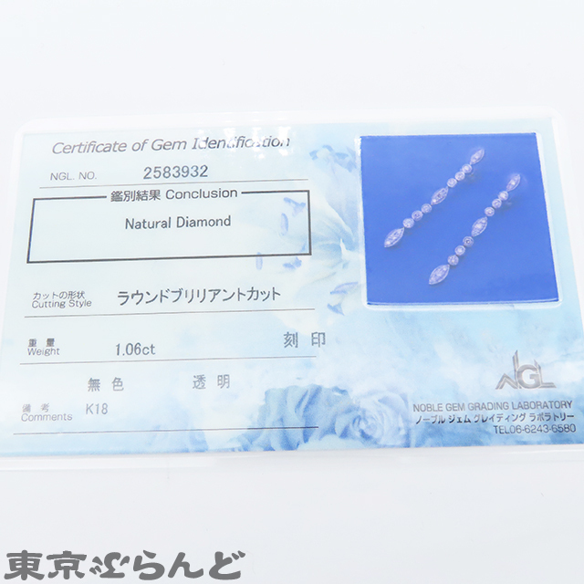 ダイヤモンド ライン ピアス 1.06ct 両耳用