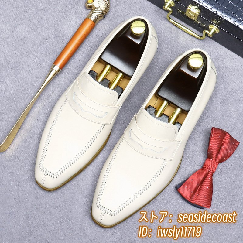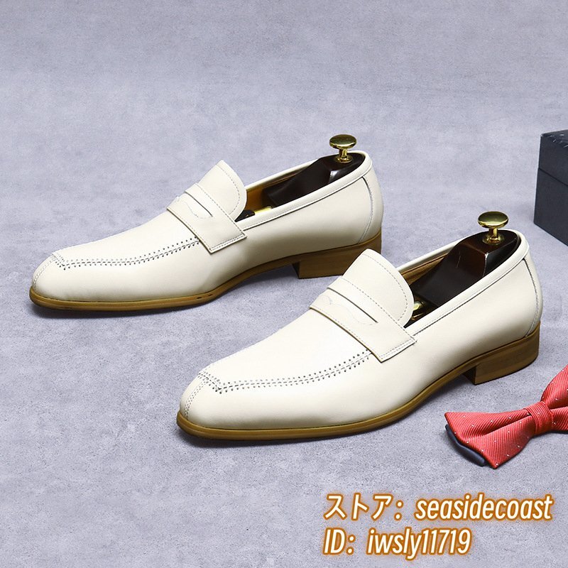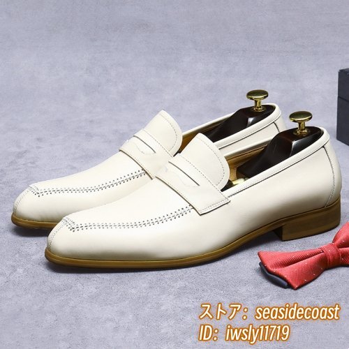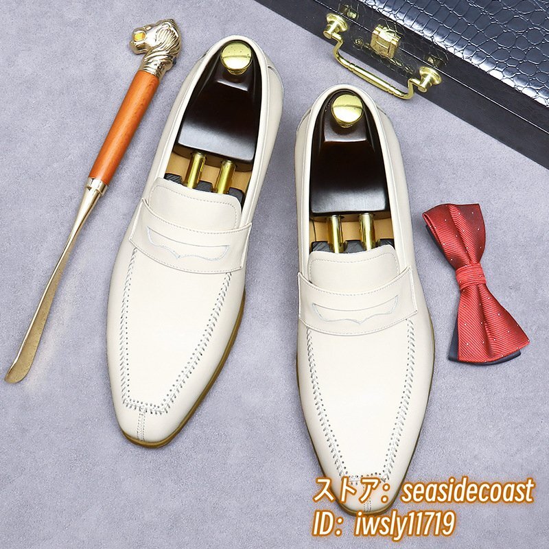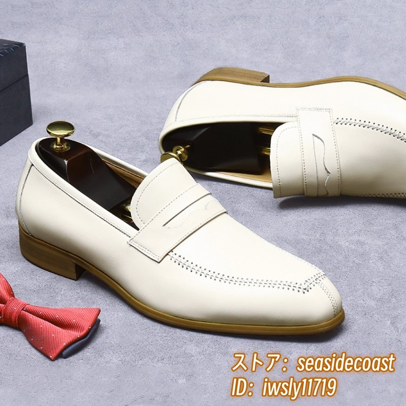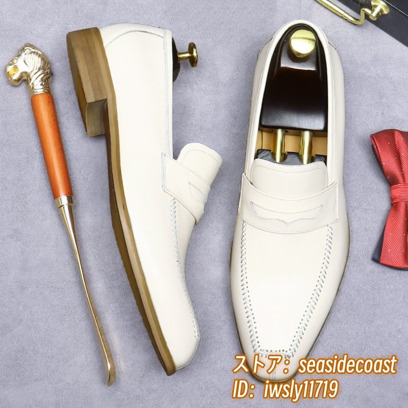 最高級■新品 メンズシューズ レザーシューズ 本革 ビジネスシューズ 紳士靴 職人手作り 高級牛革 ローファー スリッポン 通勤 上質 24.5cm