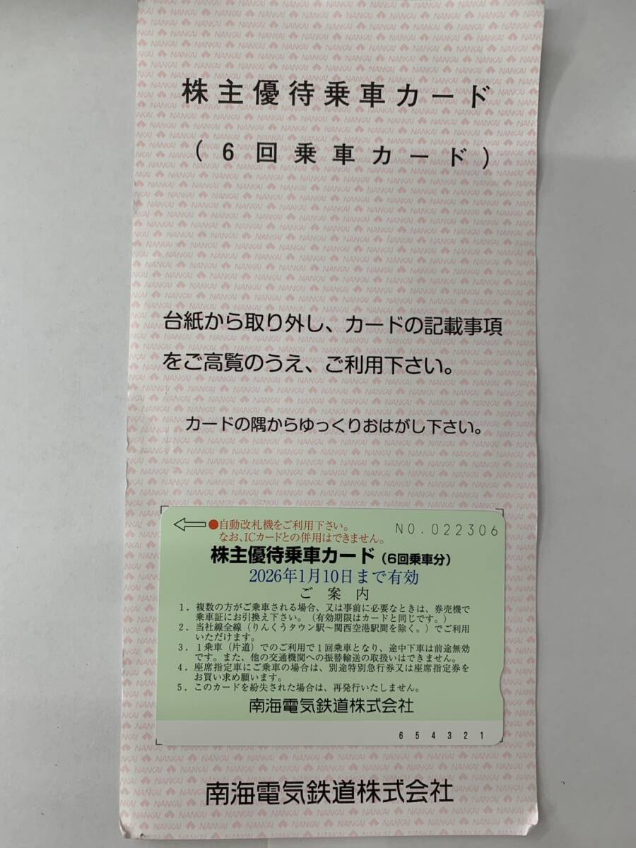 南海電気鉄道株主優待乗車カード 6回分の出品です。