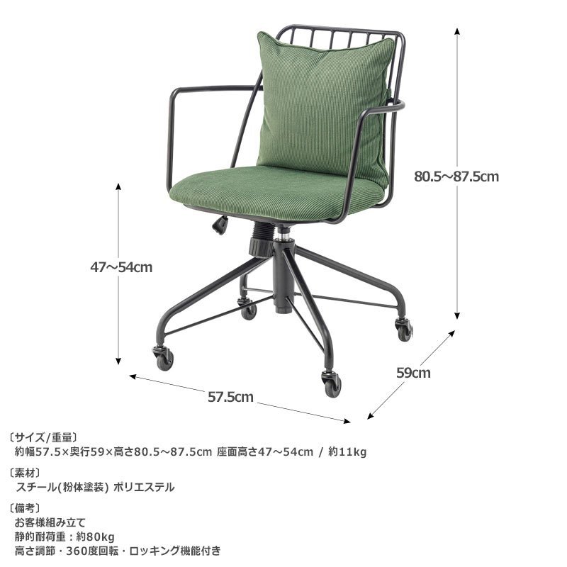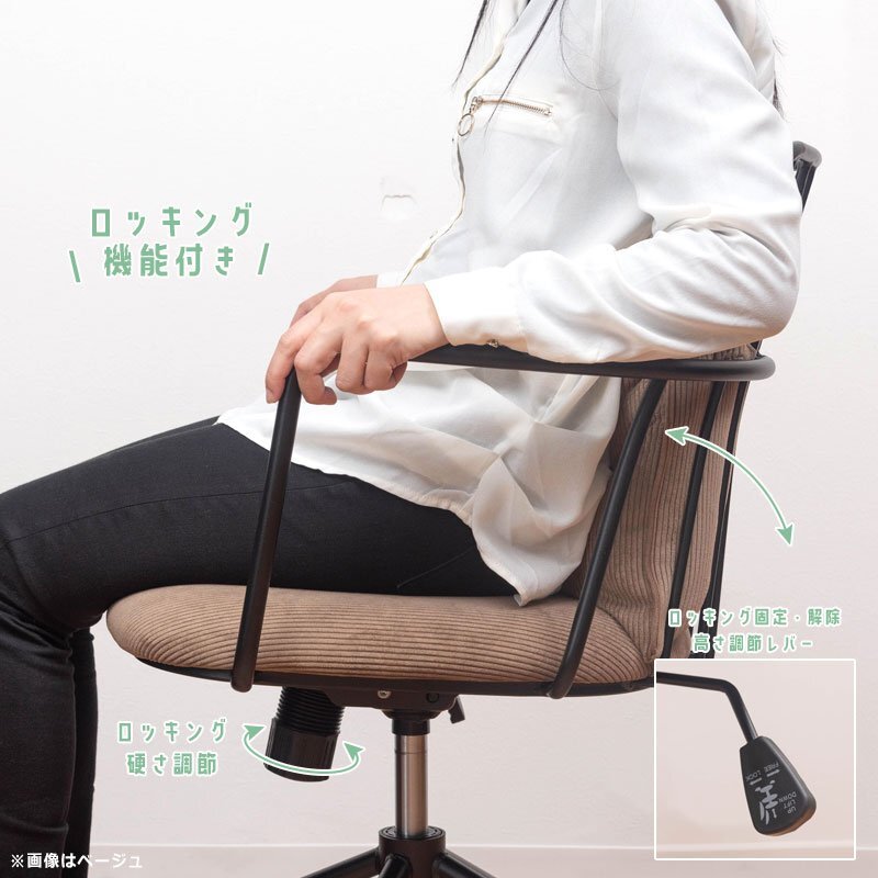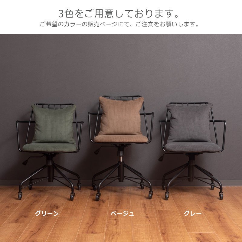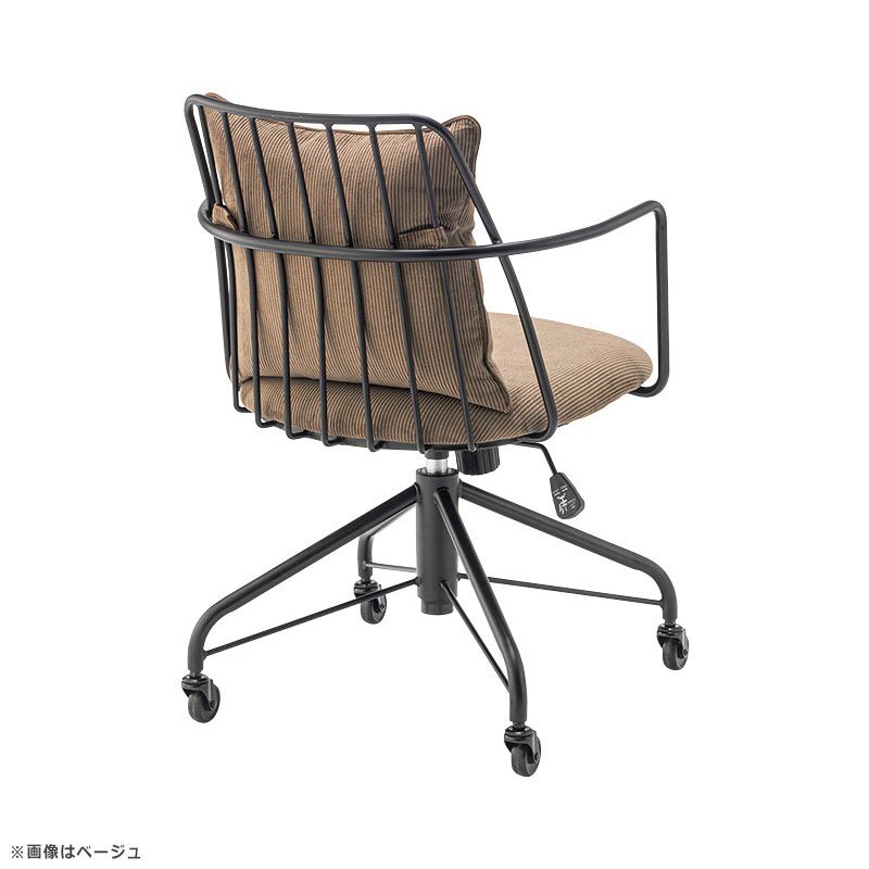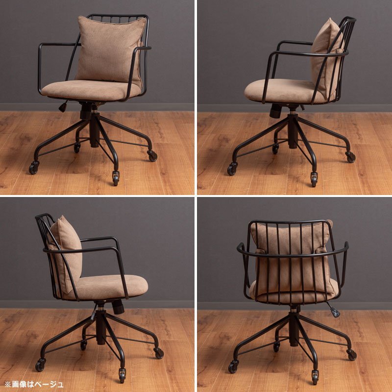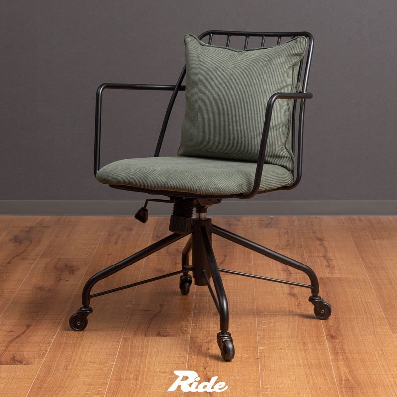 コーデュロイ生地のクッションにアイアンフレームがインダストリアルスタイルのデスクチェア