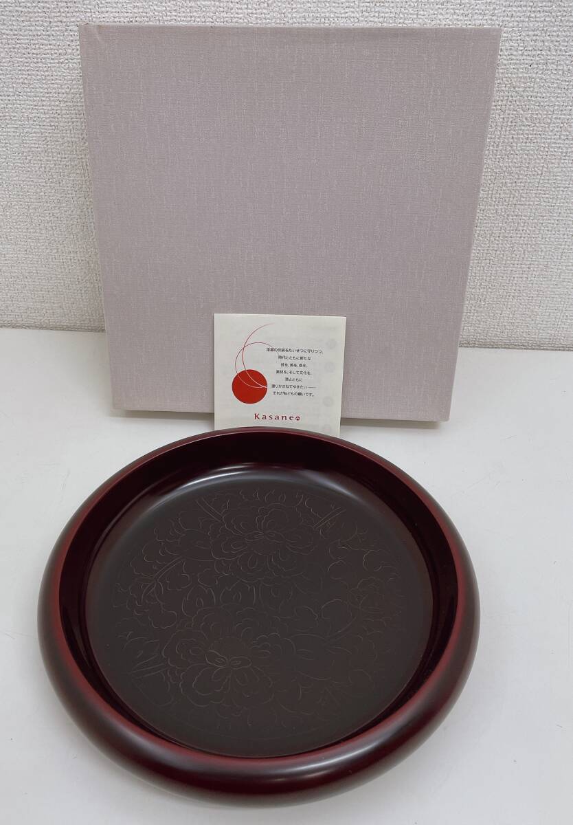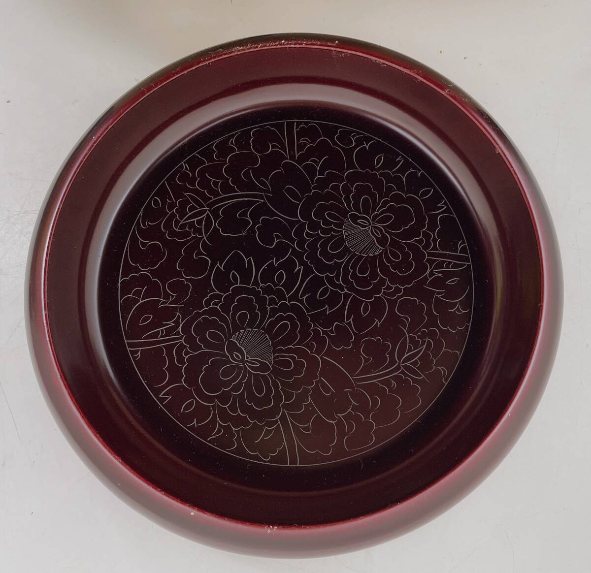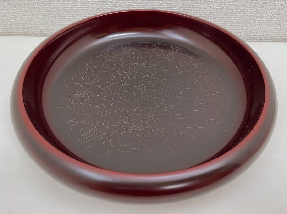 ☆【木製漆器 唐草牡丹溜 浅鉢 径 約23.5cm】アンティーク /コレクション /工芸品 /お盆 /★繊細で美しい唐草模様 /A79-417