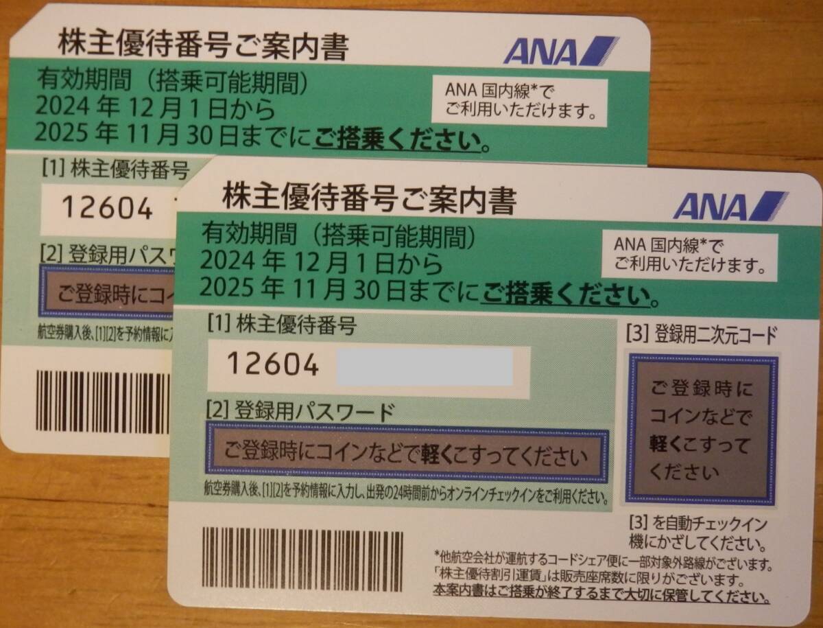 ANA株主優待券 2枚 有効期間2025年11月30日 ※スピード番号通知(郵送相談可)