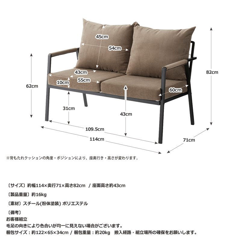 幅約114×奥行約71×高さ約82cm 座面高さ:43cm / 約16kg