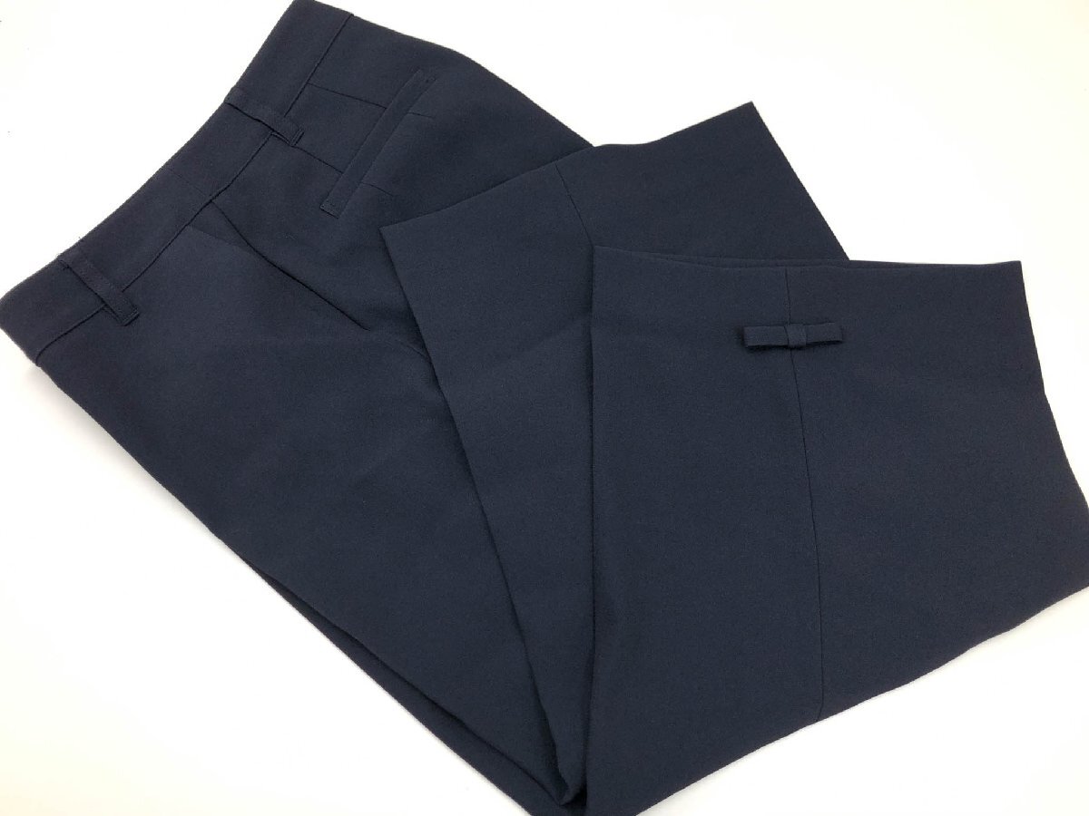 超美品【TO BE CHIC トゥービーシック】W5R50-506-29 リボン装飾 七分丈 ストレッチパンツ (レディース) size42 ネイビー系 ◇17LP2746◇