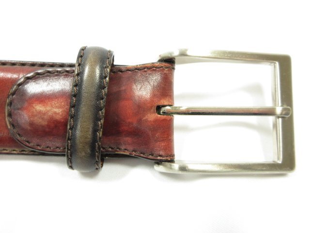 美品 【マグナーニ MAGNANNI】 1076 レザー ムラ感 パティーヌ風 シンプル ベルト (メンズ) size105 ボルドー系 ◇30ME7738◇