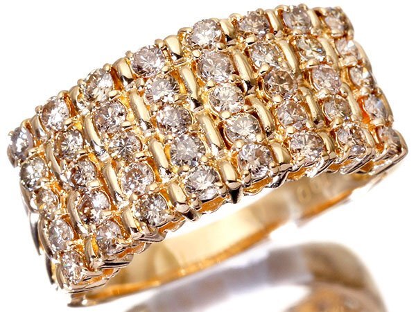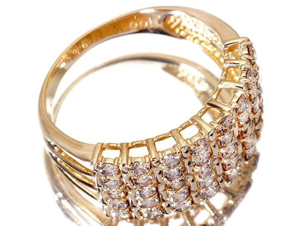 豪華な輝き放つ良質天然ダイヤモンド総計1.00ctを素敵に宝飾した、高級K18イエローゴールドリングを1円から特別大放出致します!
