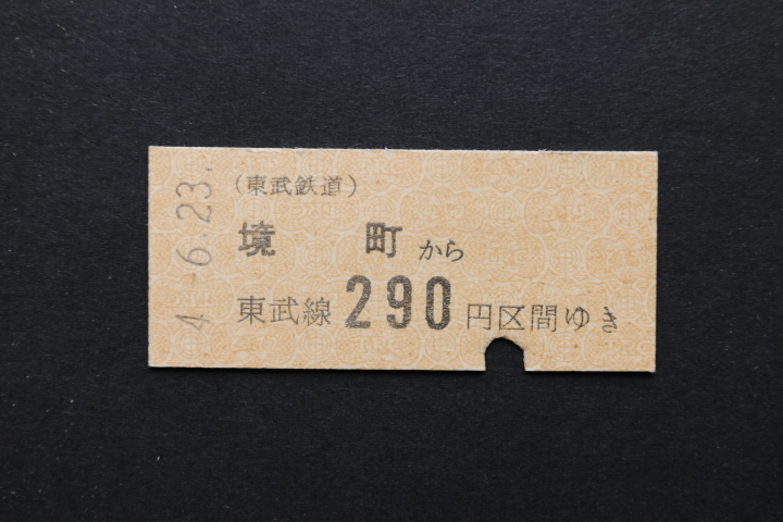 東武鉄道 乗車券 境町から 290円区間ゆき
