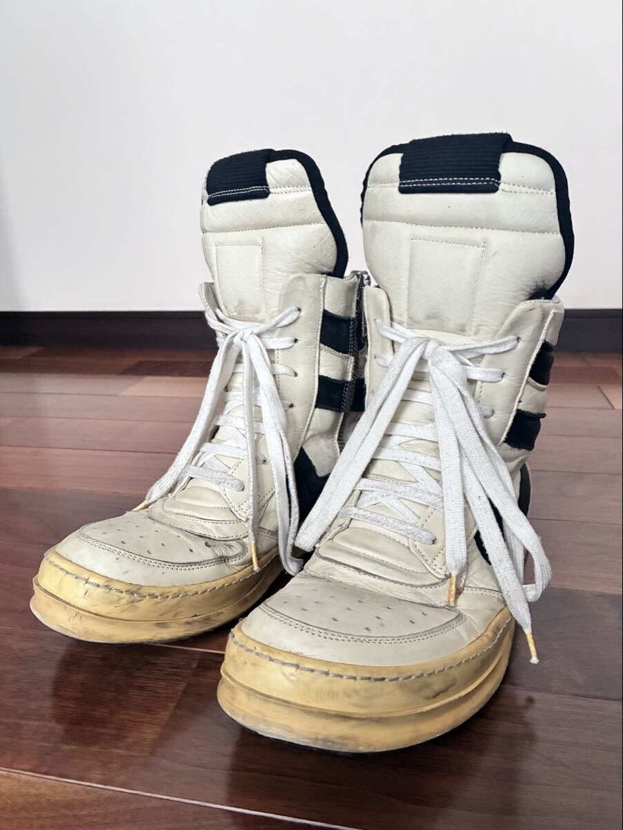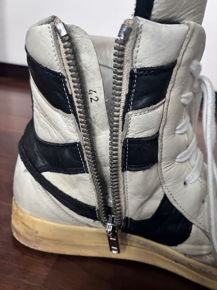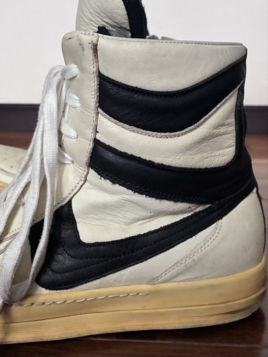 初期モデル! レアなホワイト! Rick Owens リックオウエンス GEO BASKET DUNK SNEAKER ジオバスケット ダンク ハイカット スニーカー 42