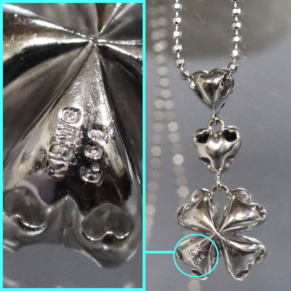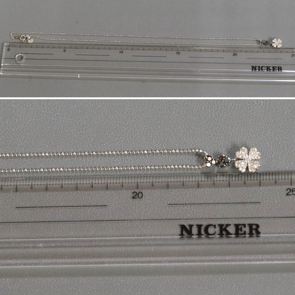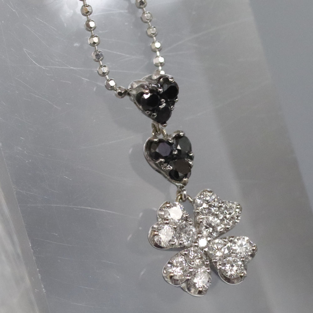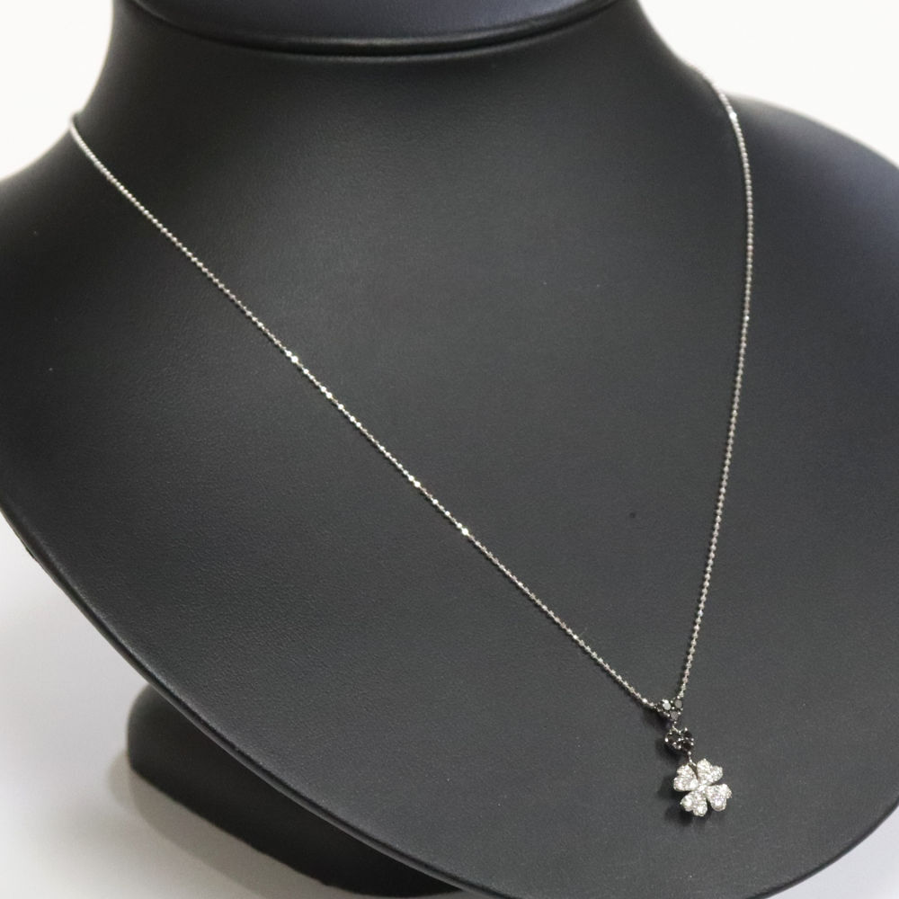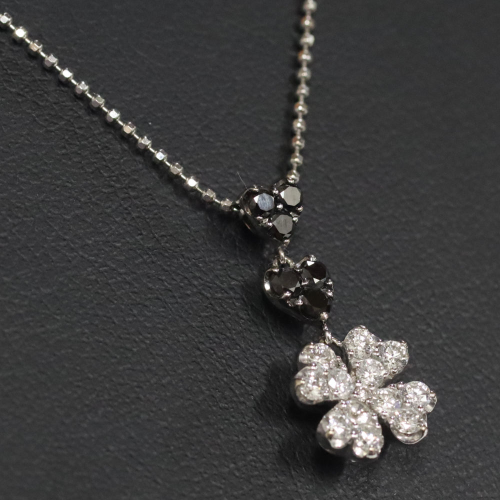 ■ K18WGダイヤモンドクローバーペンダント BkD D 0.53 4.1g AJ付き45cm ■ | ||||||||||||||||||||||||