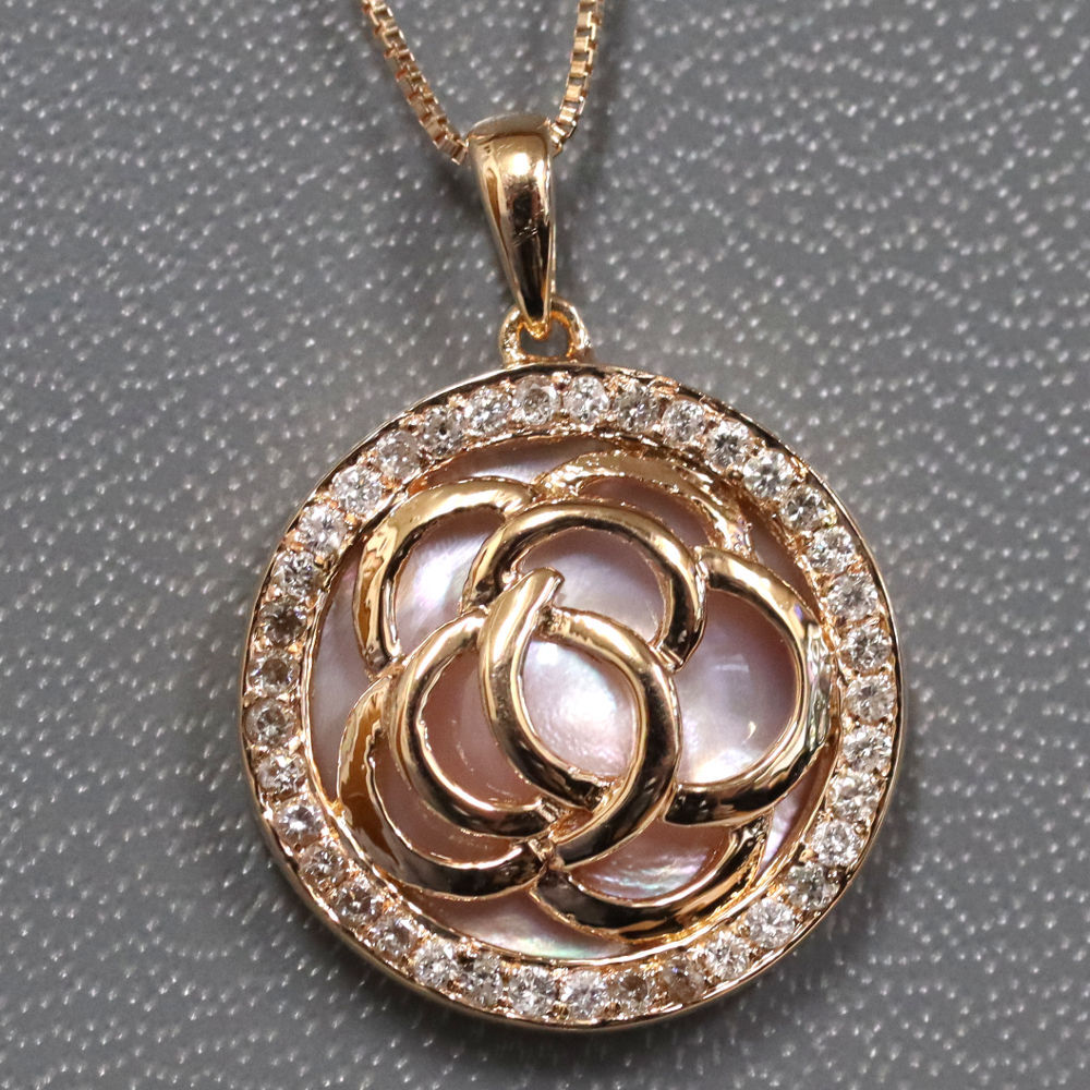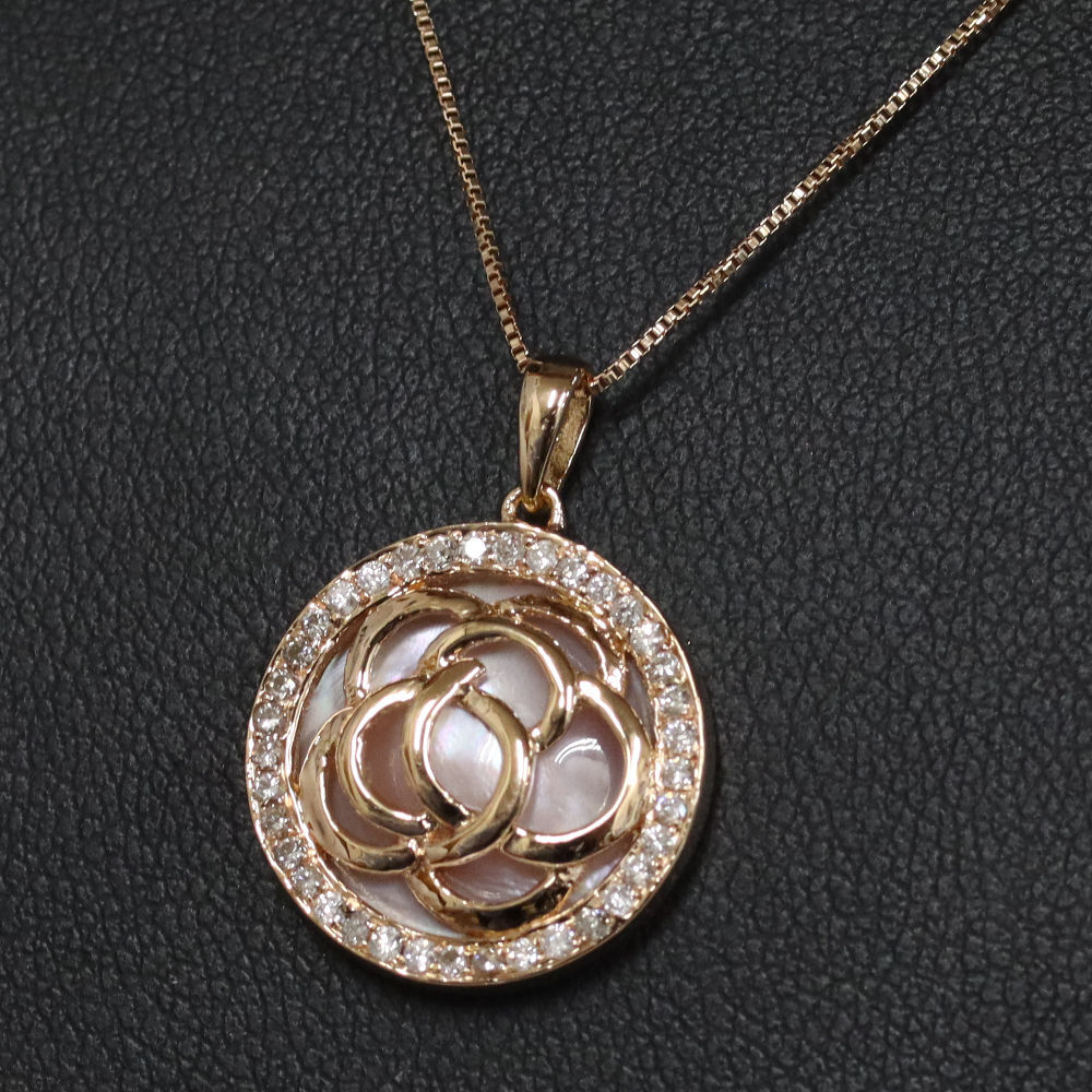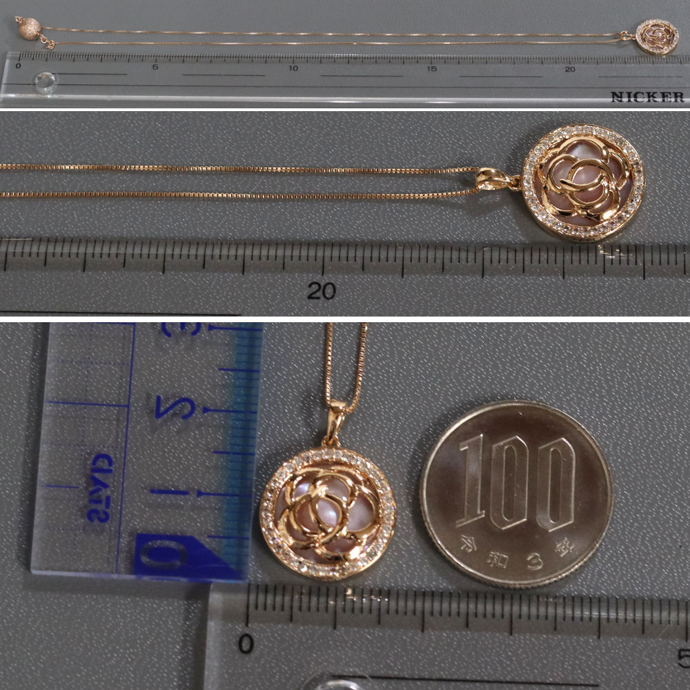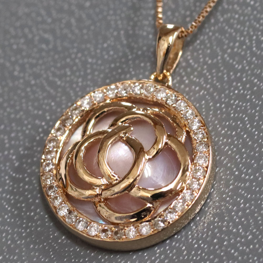 | ■ K18PGシェルダイヤモンドホワイトサファイアネックレス 6.0g ■ | |||||||||||||||||||||||||||||||||