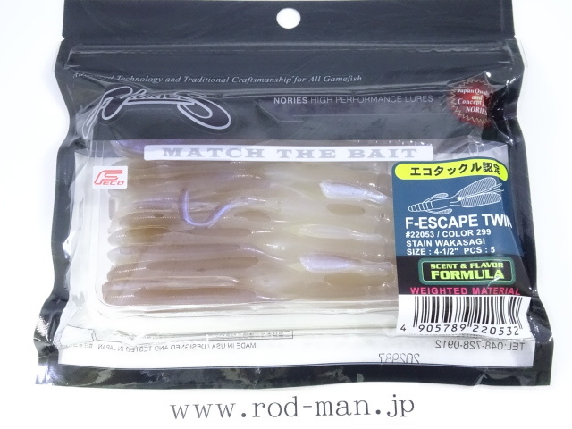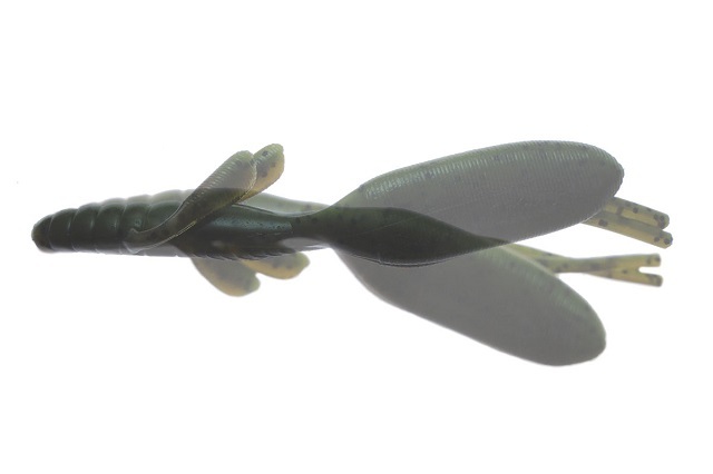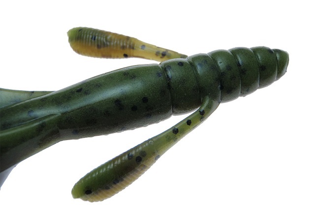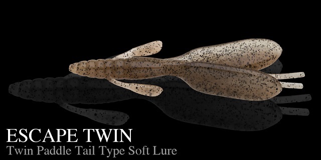 メリハリの効いた動きに、ボリュームによる“強い”アピール効果を持たせたのが「エスケープツイン」ボリュームアップした各パーツは全てストレート系水押し形状。これによりフォールやリフトなどではスパッと動いてリアクションを誘い、着底の瞬間やシェイクでは各パーツが水を大きくかき乱し、強い存在感でアピールします。中でも特徴的な2枚の分厚いパドルは、アクション中はもちろんフォールやただ巻きでも上下に大きくウォブリングして他に無いアピールを見せます。全体としてのシルエットは標準的なザリガニに合わせた喰わせサイズ。高比重素材に混ぜ込んだ塩と、味と匂いの粒子がさらに喰い込みを確実にします。使い方は杭やブッシュなどのカバー直撃テキサス。ブレイクやハンプ狙いのキャロライナ。ビッグフィッシュ狙いのラバージグトレーラーとしてもベストマッチ。勝負の早い”強い”ソフトベイトの釣りに欠かせないワームです。
