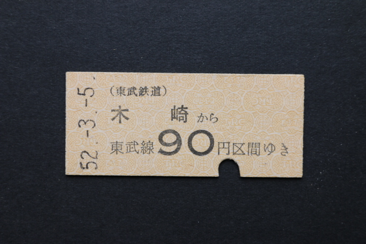 東武鉄道 乗車券 木崎から 90円区間ゆき