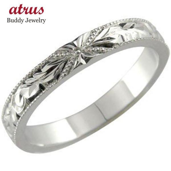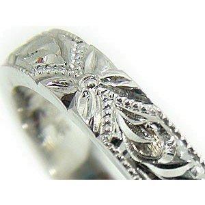 ハワイアンリング 指輪 プラチナ900 プラチナリング プルメリア 花 スクロール 波 小指に記念にお守りとして ミル打ち ミル