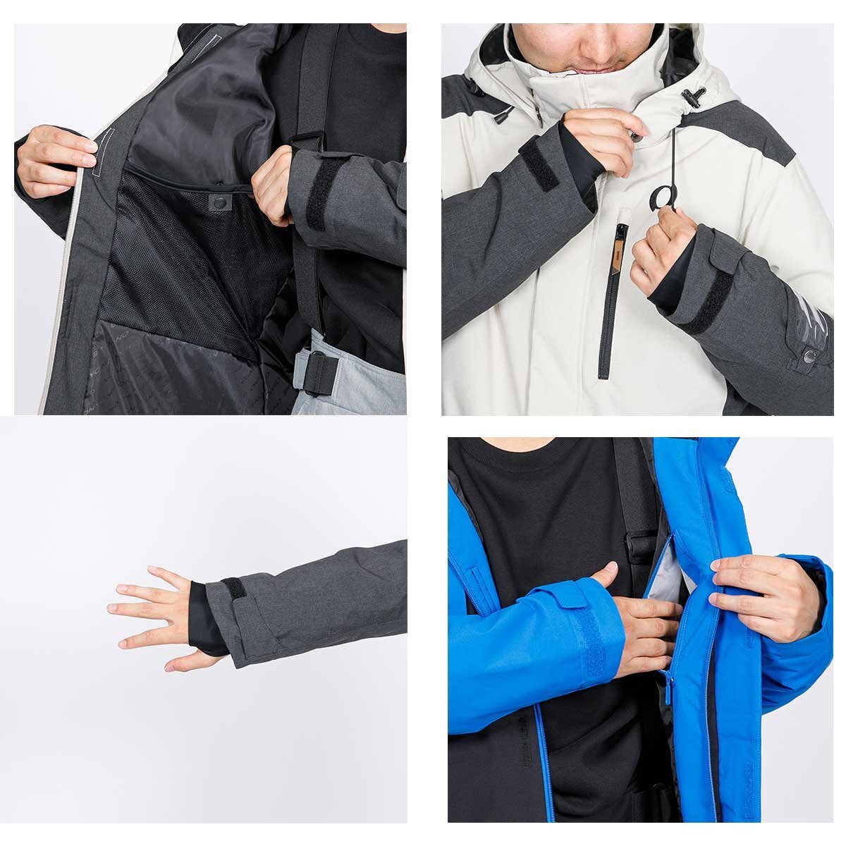 詳細 | 配色と切替でスポーティーさを表現しつつ、杢感でスーツとしての質感向上。ジャケット、パンツ共に杢素材の組み合わせで上下のバランスの取れたスーツ。 【素材】 ストレッチツイル ・表地/ポリエステル100% ポリウレタンラミネート加工 ・裏地/ポリエステル100% 【耐水圧】 10,000mm 【特徴】 2wayストレッチ フードの脱着ができます。リフトなどに引っかかっても取れるので安全。 ジャケット内側にゴーグル等の収納ができます。大切なモノは内側に収納。 スマートフォンを収納できるポケット。 パスケース ウエストゲーター(ウエストからの雪や風の浸入を防ぎます。) ウエストアジャスター(ウエストのサイズ調整が可能) |