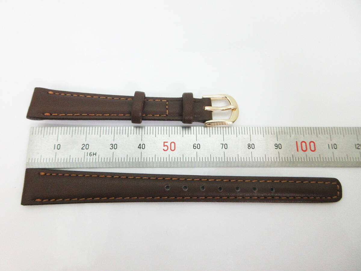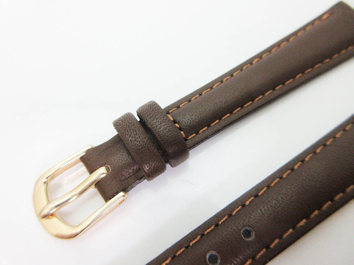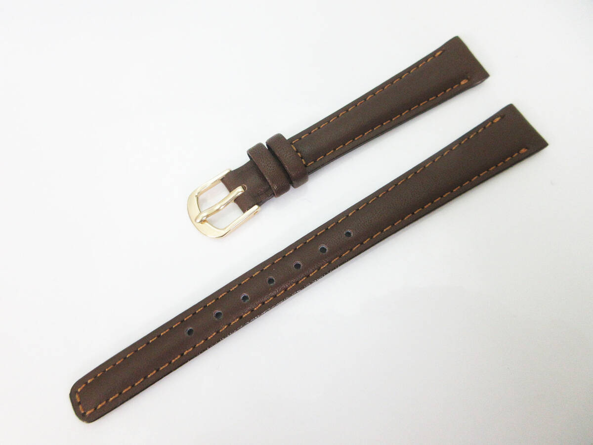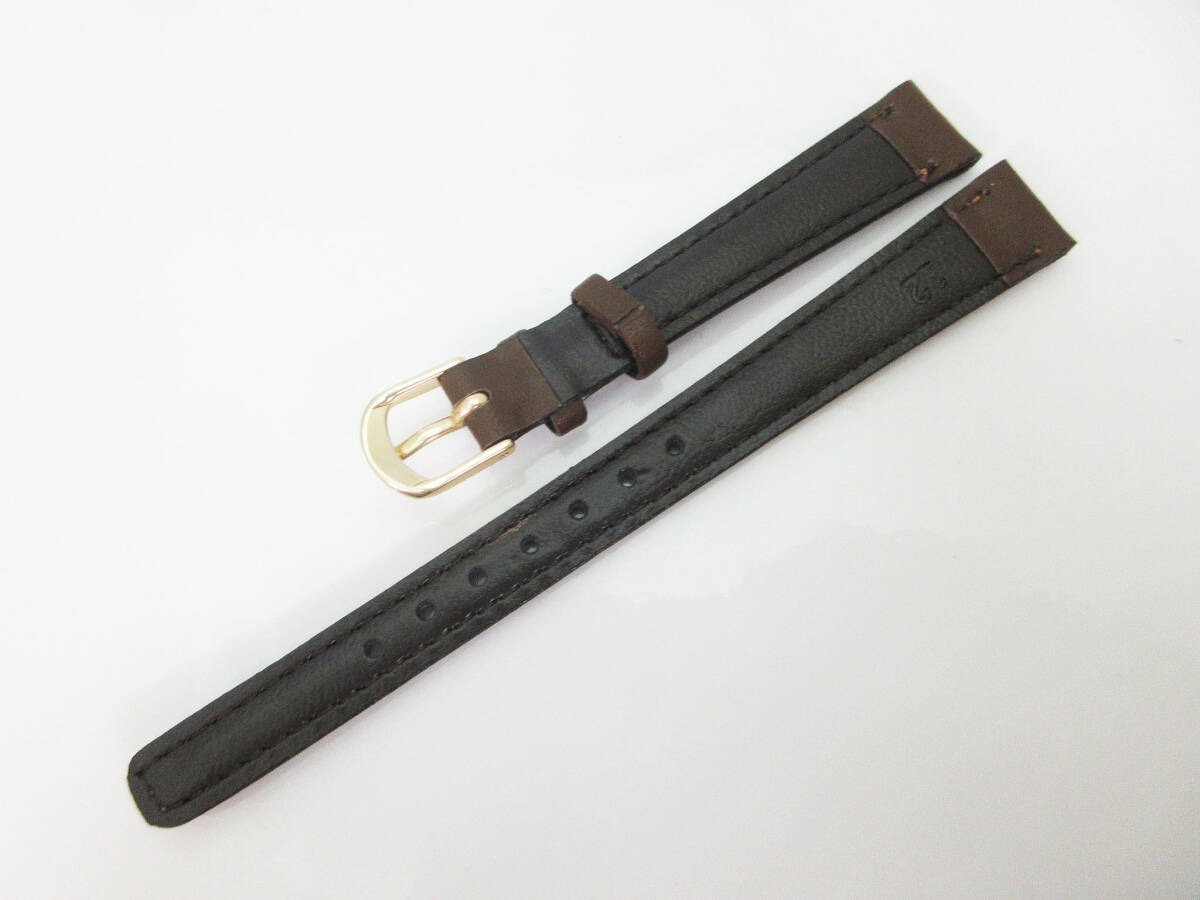 M1055(q)【腕時計用 レザーベルト】ステッチ 茶 ゴールド金具★ラグ幅 12mm/バックル幅 9mm★本革 牛革★替えベルト/交換バンド★未使用