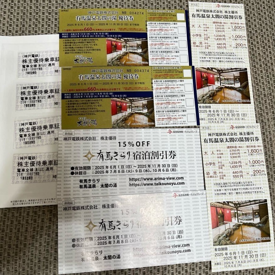 送料無料★神戸電鉄株主優待乗車券4枚 有馬温泉太閤の湯優待券2枚 割引券2枚 有馬きらり割引券2枚 きっぷ 切符 神鉄