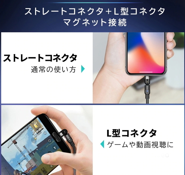 | ケーブル長: 2メートル ×3本 カラー は下記よりランダムにて発送となります (+100円で選択自由となります、購入前にお知らせください) ★落札後、下記から選択ご連絡ください 【カラー】 1.レッド 2.パープル 3.シルバー 4.ブラック 【端子種類】充電端子下記から自由選択できます9個 1.Micro USB、 2.Type-C、 3.ライトニング・iphone 合計12点セット落札後、ご希望の種類をお知らせください ★1m・色違い・端子別売しております ★Type-Cは下記機種は対応いたしません ・ソニーXperia(エクスペリア) ・任天堂switch ・iPhone 15シリーズ ・iPad(iPad(第10世代) ・iPad mini(第6世代) ・iPad mini(第4世代以降) ・iPad Pro 11インチ(第1世代以降) ・iPad Pro 12.9インチ(第3世代以降) ・Fujitsu・Google・Galaxyの製品について:各社自社の規格製品が多いため、対応できない可能性があります ★iOSは機種により充電の接点の位置が異なるため、充電時差し込みを奥まで刺さず引いて位置をずらして充電してください 電流/電圧 5V/2.4A 【簡単取り付け・取り外し】 180°+360°回転デザインを採用し、充電の角度を自由に調整できます。 充電しながらゲームをしたり、動画を見たりする際、コネクタの接続部分が 邪魔にならず、快適にゲームを楽しむことができます。 充電しない時、磁気コネクターは防塵カバーとして活躍になり、 コネクタも綺麗に保ちます。 強力な磁石を採用しているのでコネクタの近くに置くだけで、 ワンタッチで簡単に接続して充電できます。 ずっと携帯電話に挿入しても、外観の美しさが少しも減らしません。 何回もの挿入や取り外しにより、携帯電話USB端子の損傷を和らげます。 【LEDランプ付き&強化ナイロン製】 通電時、LEDライトが点灯し通電中と一目瞭然です(通電時常時点灯します) ケーブルを抜く際、軽く引き寄せるだけで、ケーブル本体を引っぱってしまう心配もありません。 高品質のナイロンを使用し丈夫な作りで、過度に曲げることで断線や脱線を防ぎます。 一本三役なマグネット式充電ケーブル、端子(540度接続タイプ)を変更することで他のタイプ Micro USB、Type-C、ライトニングも対応でき接続可能です *製造時期によりLEDライト・接続部分の形状が変わる場合がございます、 ご了承いただける方のみご入札願います *データ伝送とQC3.0急速充電をサポートしておりません。 |