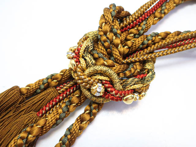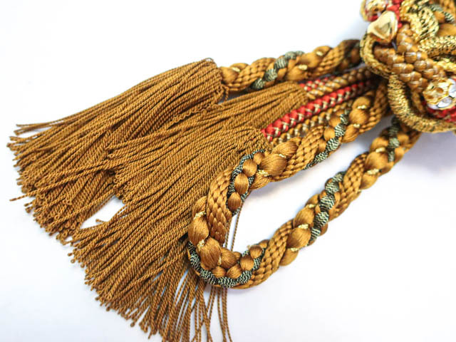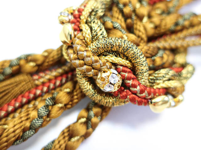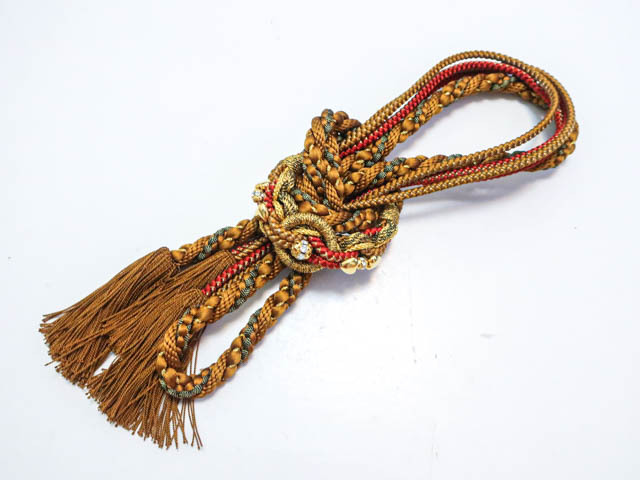 《京都一輝堂》【着物】 和装小物 帯締め 帯締 振袖用 丸組 撚り房 飾り付き 金糸 24w-9476