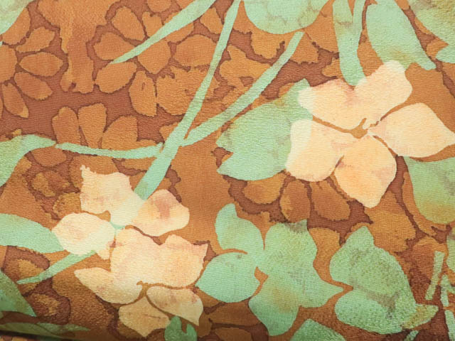 リサイクル商品ですが状態の良い綺麗なお品でございます。 地色は 茶です。 1枚目の画像が近いお色かと思われます。 素材は正絹です。 |