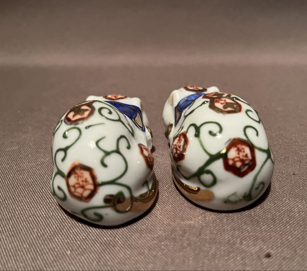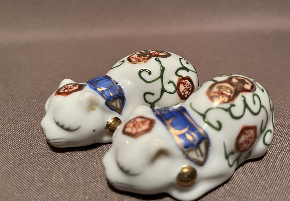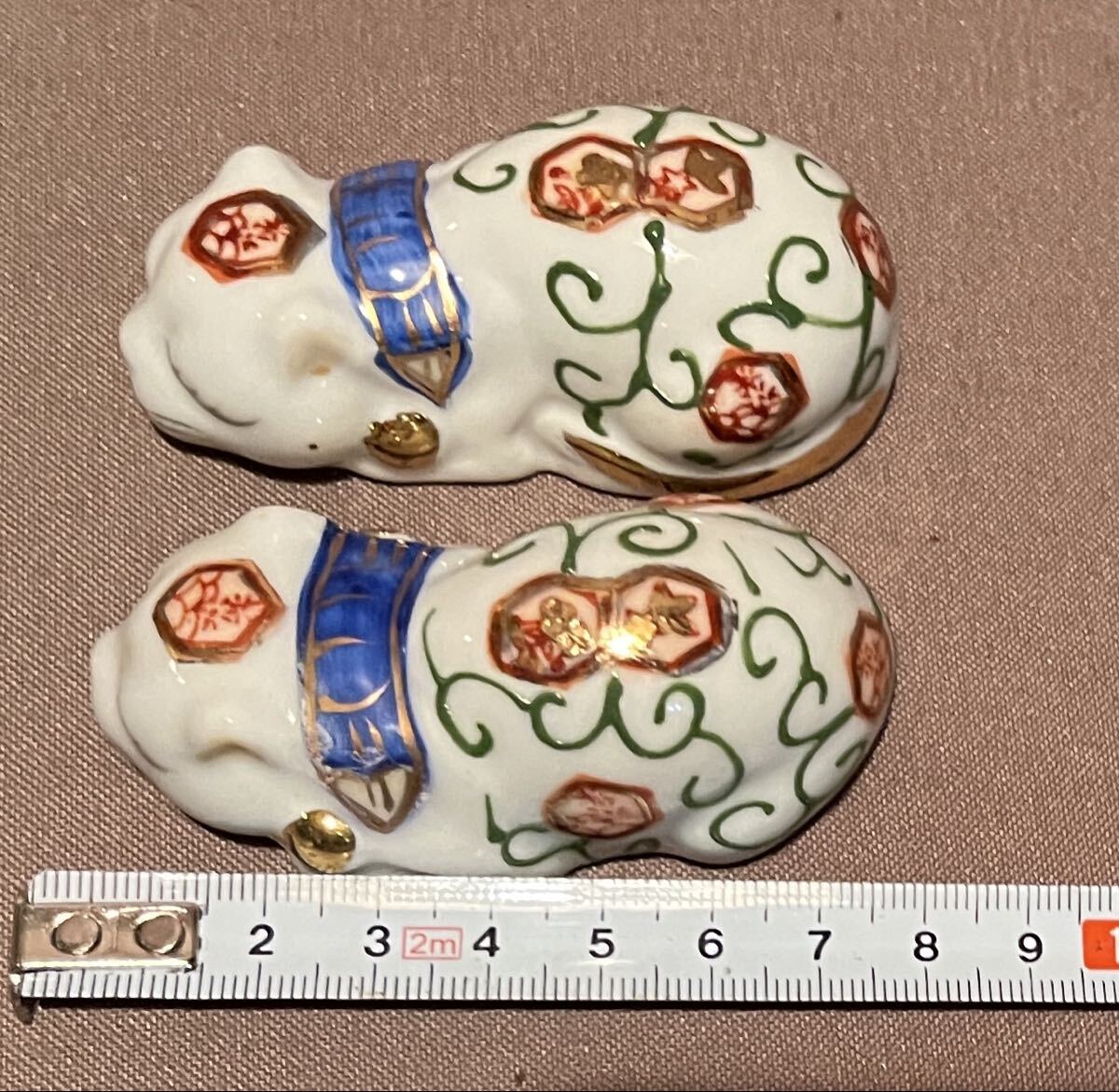 猫置物 左右ペア 2匹 眠猫 ネコ ねこ キャット 縁起物 インテリア 亀甲模様です。
