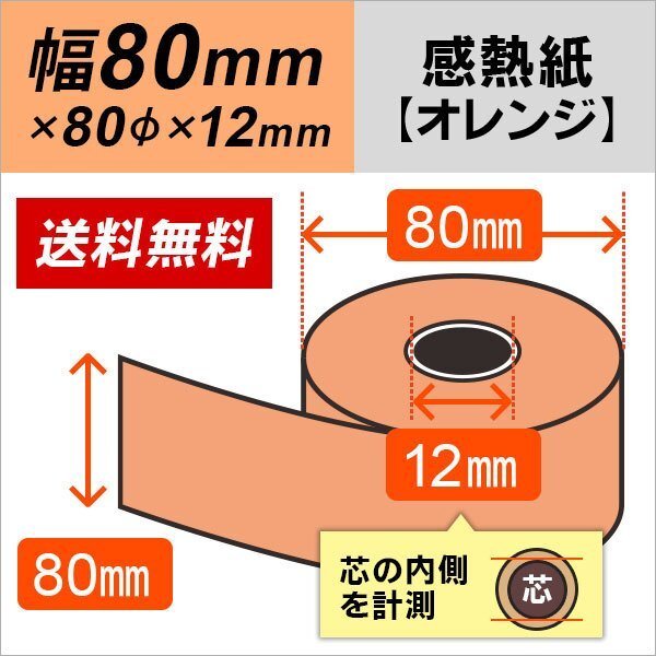 送料無料 感熱カラーロール紙 オレンジ 80×80×12 (5巻パック)