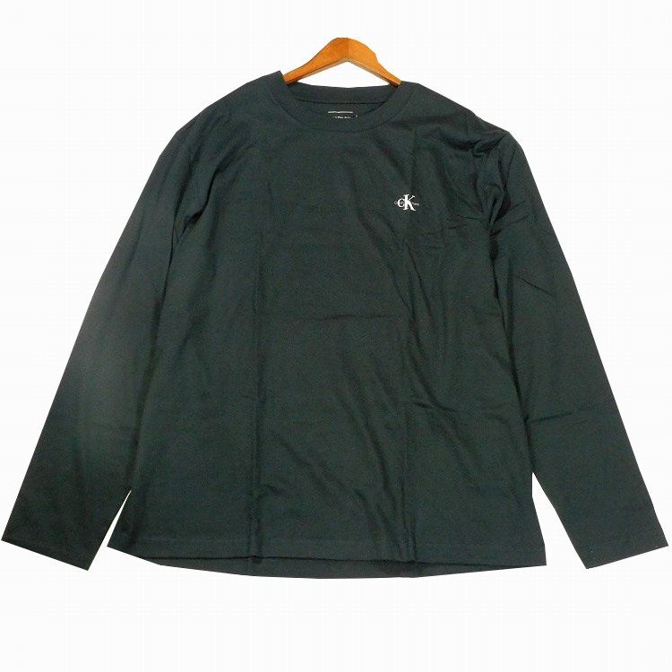 新品 1円~ カルバンクライン 長袖カットソー L 黒 ロゴ ロングスリーブ Tシャツ コットン ロンT Calvin Klein Jeans メンズ【4750】