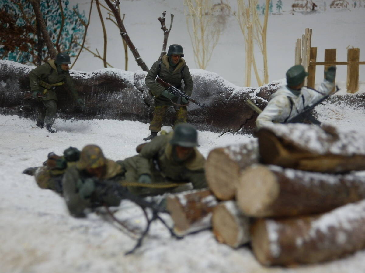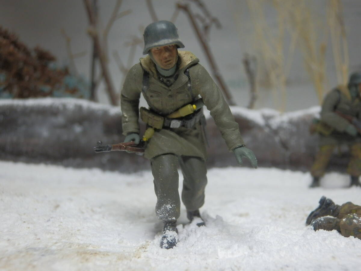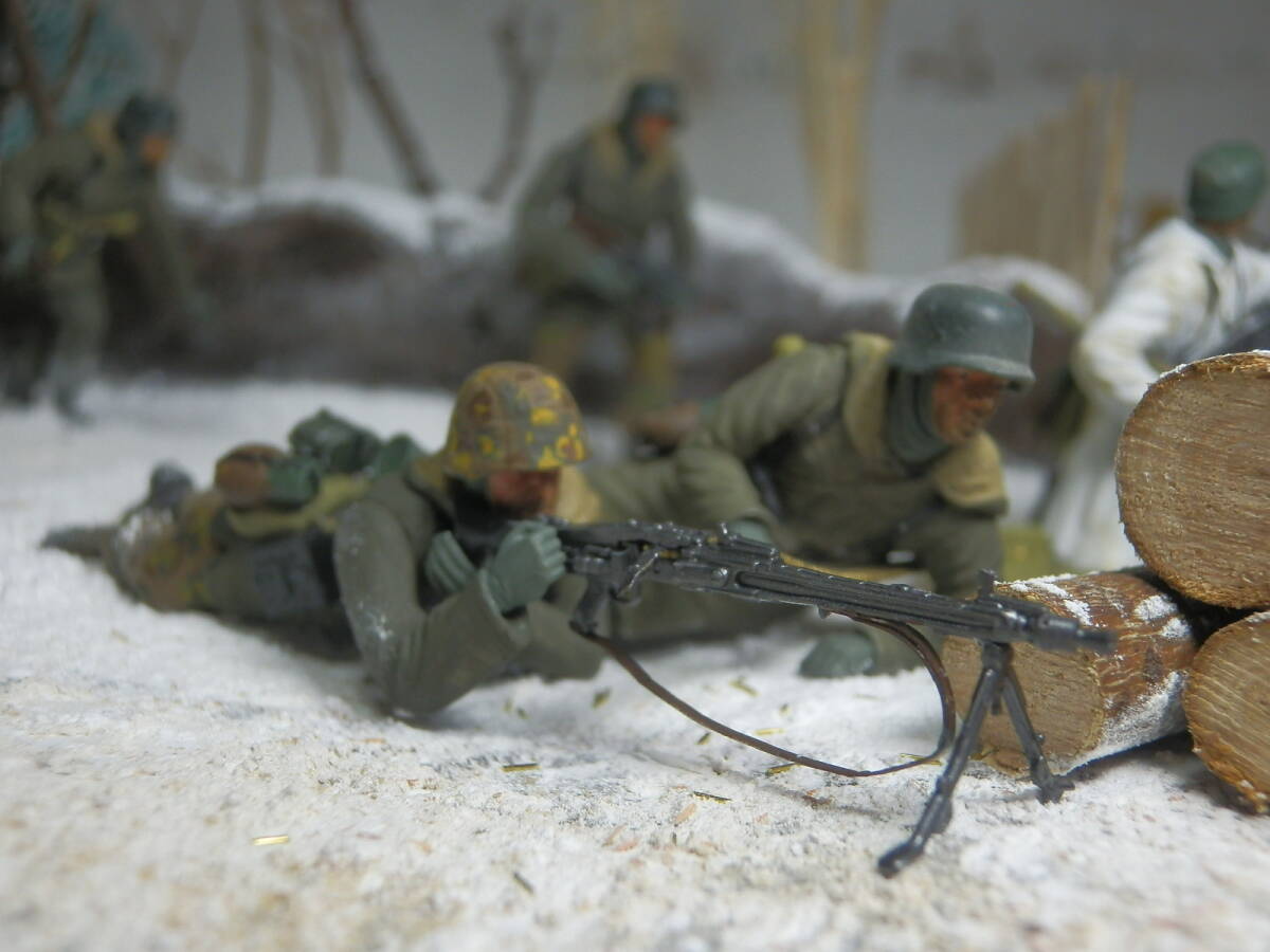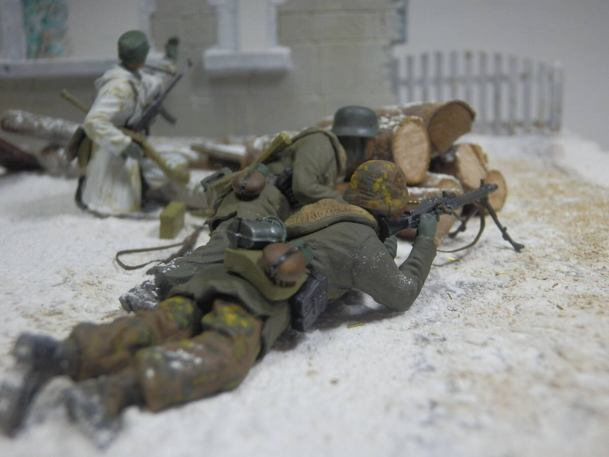 1944年3月、東部戦線ウクライナ。ソ連軍に包囲されたコーヴェリを奪還すべく反撃に出たSS第5装甲師団第9擲弾兵連隊所属の擲弾兵のイメージです。(セットは4名ですが追加の1名もドラゴンモデルズ社製です)